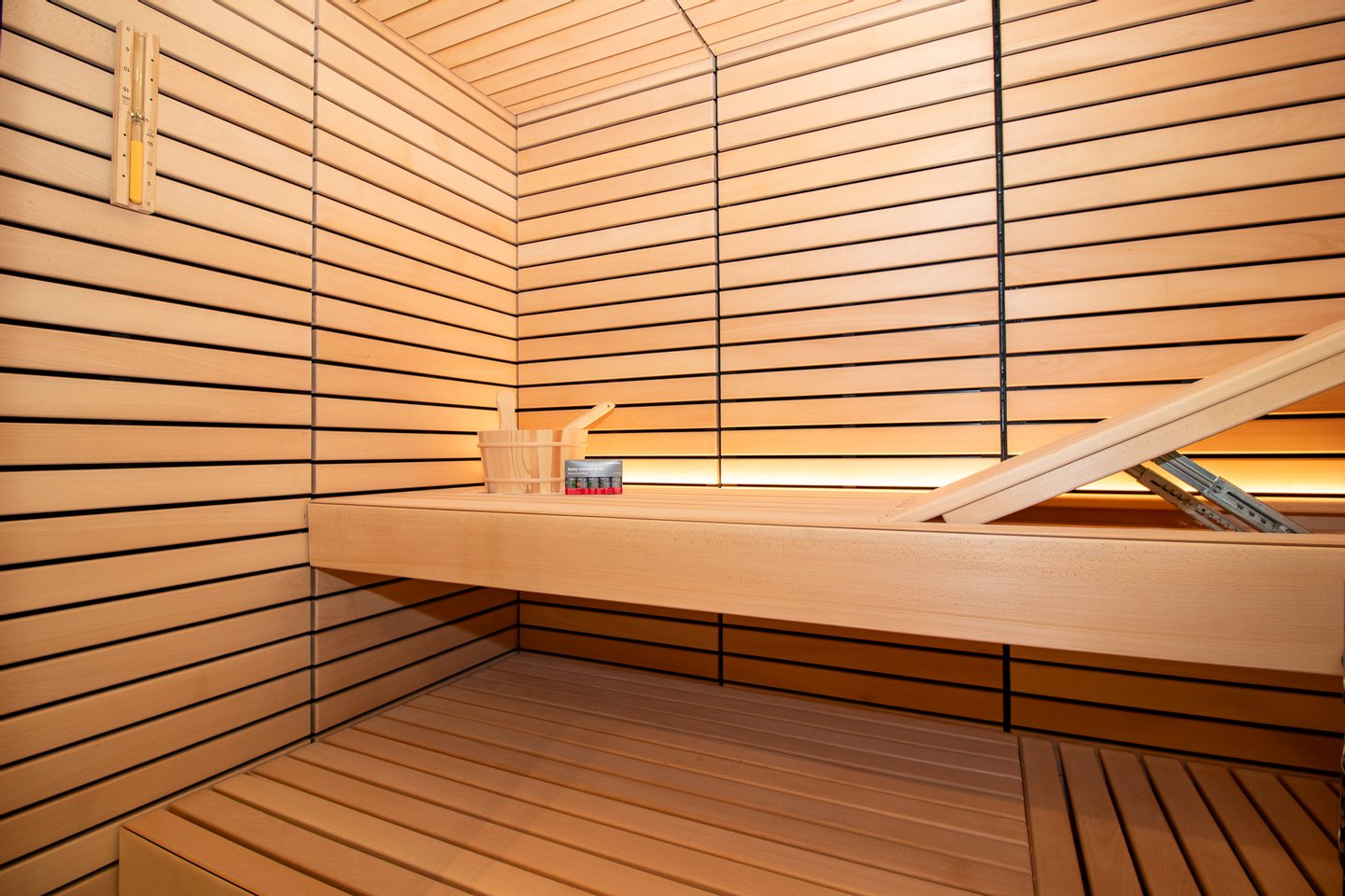- Private Spa mit Sauna und türkischem Bad, das Ihnen eine Oase des Wohlbefindens bequem von zu Hause aus bietet.