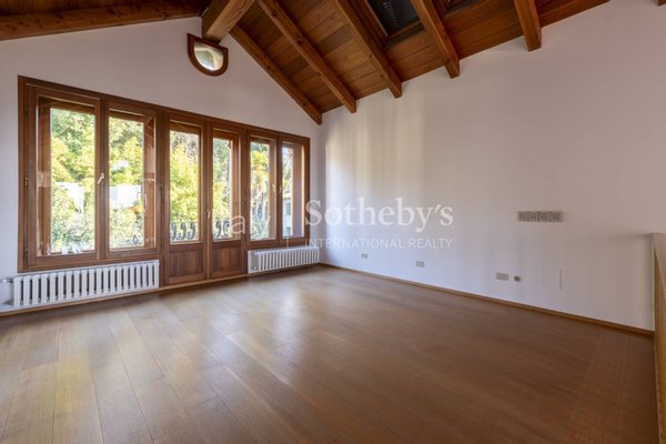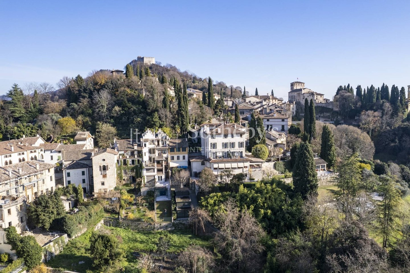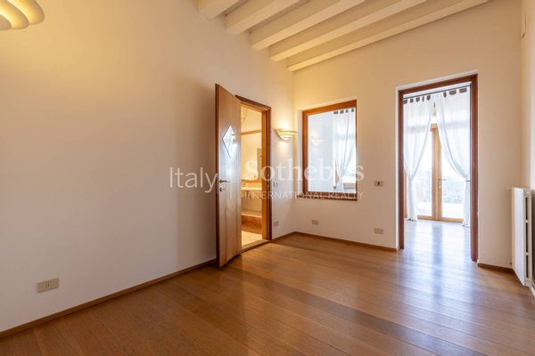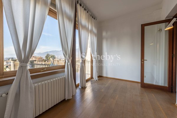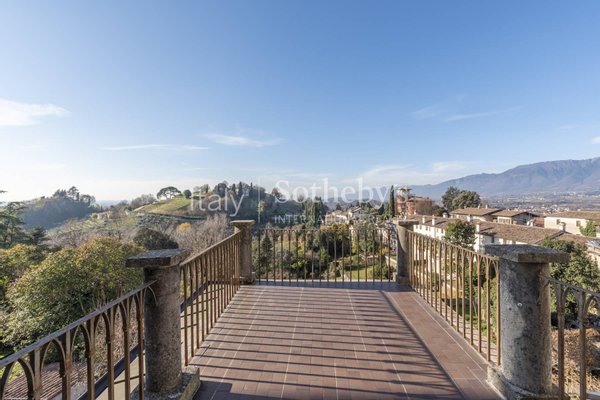 Das Gebäude erstreckt sich über mehrere Ebenen mit repräsentativen Räumen, eleganten Salons, einem Arbeitszimmer und lichtdurchfluteten, gut aufgeteilten Wohnbereichen. Die Wohnräume befinden sich in den ersten beiden Etagen, während die Schlafzimmer mit Bädern und Ankleidezimmern in den oberen Stockwerken untergebracht sind. Darüber hinaus verfügt das Anwesen über ein Hallenbad, Serviceräume und Bereiche, die für eine Sauna vorgesehen sind, in den unteren Etagen. Vom privaten Garten, dem Patio und den Panorama-Terrassen aus genießt man einen grenzenlosen Blick auf die umliegenden Landschaften mit Ausblicken auf das historische Städtchen und die Hügel - von der Rocca bis zum Monte Grappa.