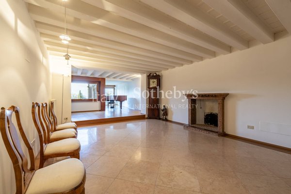 Das Gebäude erstreckt sich über mehrere Ebenen mit repräsentativen Räumen, eleganten Salons, einem Arbeitszimmer und lichtdurchfluteten, gut aufgeteilten Wohnbereichen. Die Wohnräume befinden sich in den ersten beiden Etagen, während die Schlafzimmer mit Bädern und Ankleidezimmern in den oberen Stockwerken untergebracht sind. Darüber hinaus verfügt das Anwesen über ein Hallenbad, Serviceräume und Bereiche, die für eine Sauna vorgesehen sind, in den unteren Etagen. Vom privaten Garten, dem Patio und den Panorama-Terrassen aus genießt man einen grenzenlosen Blick auf die umliegenden Landschaften mit Ausblicken auf das historische Städtchen und die Hügel - von der Rocca bis zum Monte Grappa.