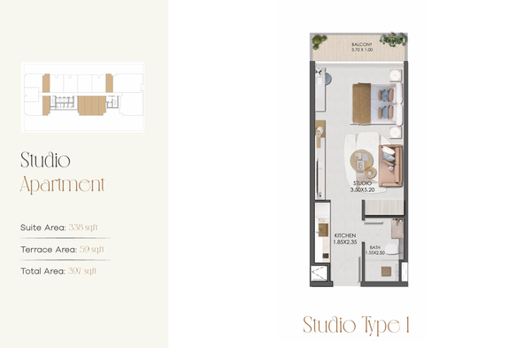 Die exklusive Studio Apartment ist Teil eines 34-stöckigen Hochhauses in Jumeirah Village Circle, einer der begehrtesten Wohngegenden Dubais. Die Wohnung ist durchdacht gestaltet und verfügt über moderne Ausstattungen sowie Smart-Home-Technologie für ein komfortables und luxuriöses Wohnen.