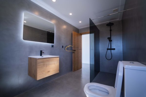 Das Obergeschoss bietet fünf Schlafzimmer, eines davon en Suite und zwei weitere Bäder. Drei der Zimmer im zweiten Stock haben Zugang zu individuellen Balkonen mit Blick auf die Landschaft und das Meer. Mit fünf geräumigen Schlafzimmern und vier eleganten Bädern ist Platz für die ganze Familie und Gäste. Klimaanlagen und Wärmepumpen sorgen das ganze Jahr über für thermischen Komfort, während die Hausautomation Komfort und intelligente Steuerung bietet.