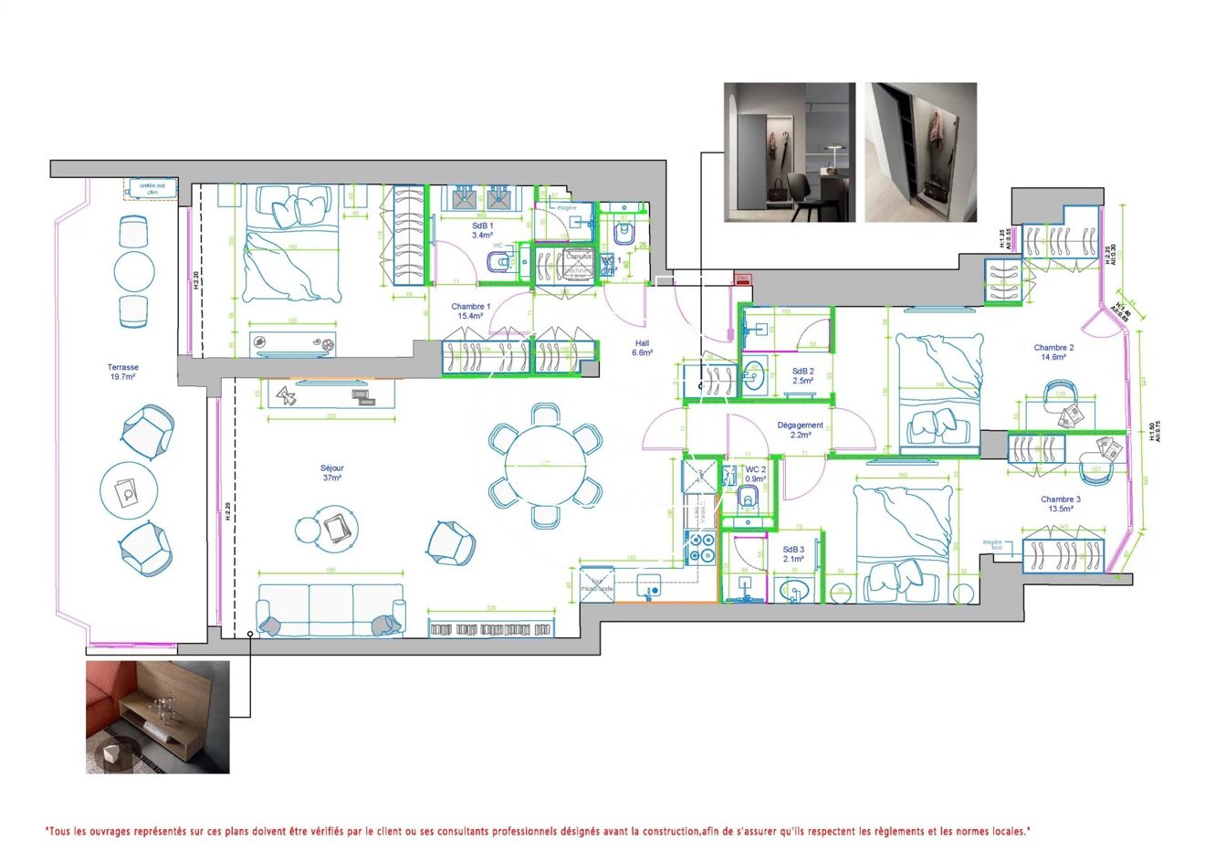 Sie verfügt über 1 Wohnzimmer mit einer elgeanten, offenen Küche, 3 Schlafzimmern mit 3 Badezimmern, 1 Terrasse mit 21 qm und einem ...mehr lesen