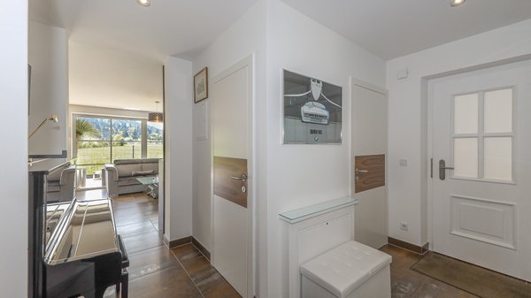 Über den Hauszugang betritt man die äußerst großzügige Diele mit integriertem Garderobenschrank, ein Gäste-WC und einen Abstellraum mit Waschmaschinenanschluss, weiters gelangt man über einen kleinen Vorraum in 2 geräumige Schlafzimmer, zwischen denen sich ein komfortables Badezimmer mit Doppelwaschtisch, Dusche und Badewanne befindet.
