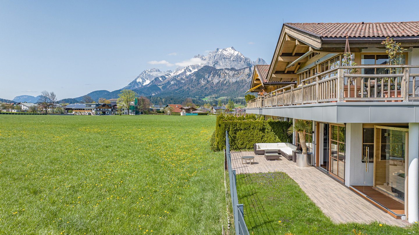 Dieses Objekt besticht durch die absolute Ruhelage und den traumhaften Fernblick über grüne Wiesen auf das Kitzbüheler Horn.