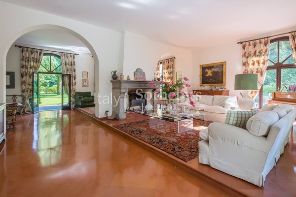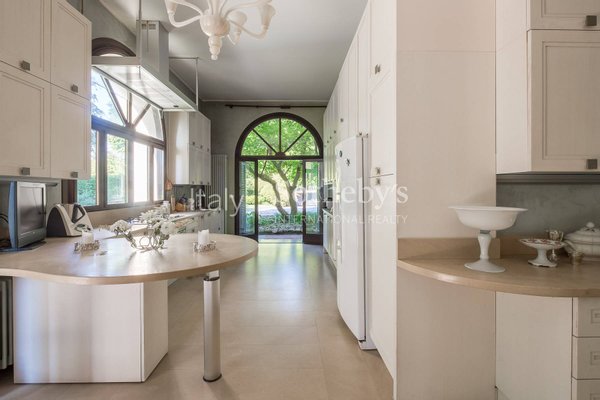 Die Villa, mit ihrem klassischen Stil und den großen Rundbogenfenstern, bietet helle und großzügig gestaltete Innenräume: ein geräumiges Wohnzimmer mit direktem Zugang zum Pool, eine moderne Küche sowie komfortable und stilvolle Schlafzimmer. Jedes Detail wurde sorgfältig durchdacht, um eine einladende und anspruchsvolle Atmosphäre zu schaffen.