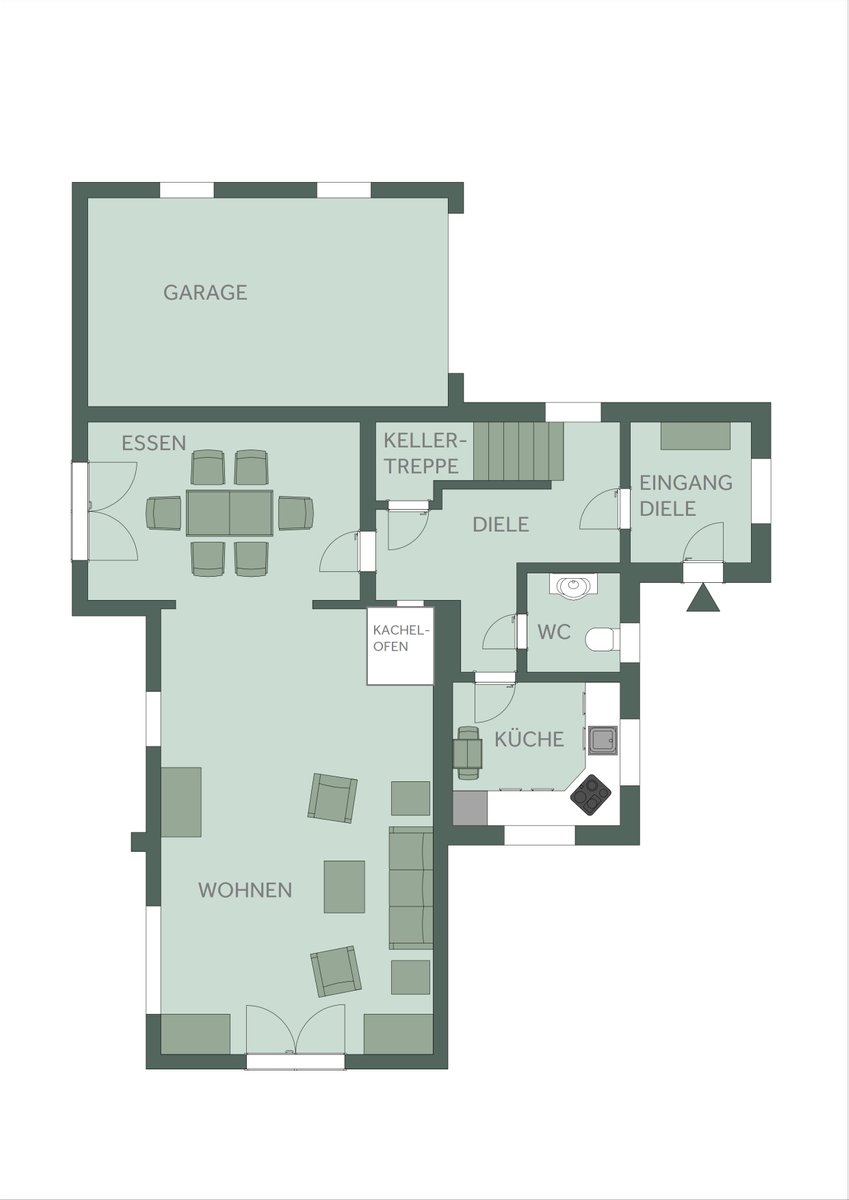 Ein großzügiger Wohn- / Essbereich mit Kachelofen im Erdgeschoss sowie ein harmonisch aufgeteilter Grundriss im Obergeschoss lassen in Kombination mit stilvollen Materialien ein wertiges Wohngefühl entstehen. Der nach Süd-Westen ausgerichtete Garten mit Natursteinterrassen und akzentuierter Beleuchtung verleiht der Immobilie auch im Außenbereich ein Ambiente, das zum Verweilen einlädt. Die in den Sommermonaten lange strahlende Abendsonne rundet die ruhige Lage perfekt ab.