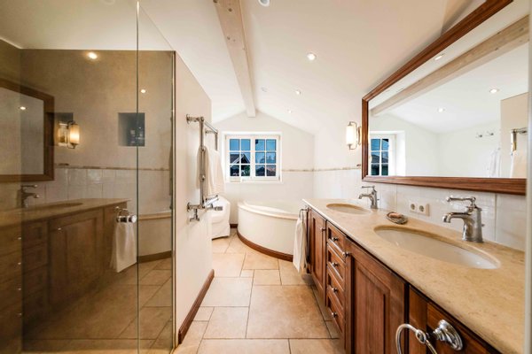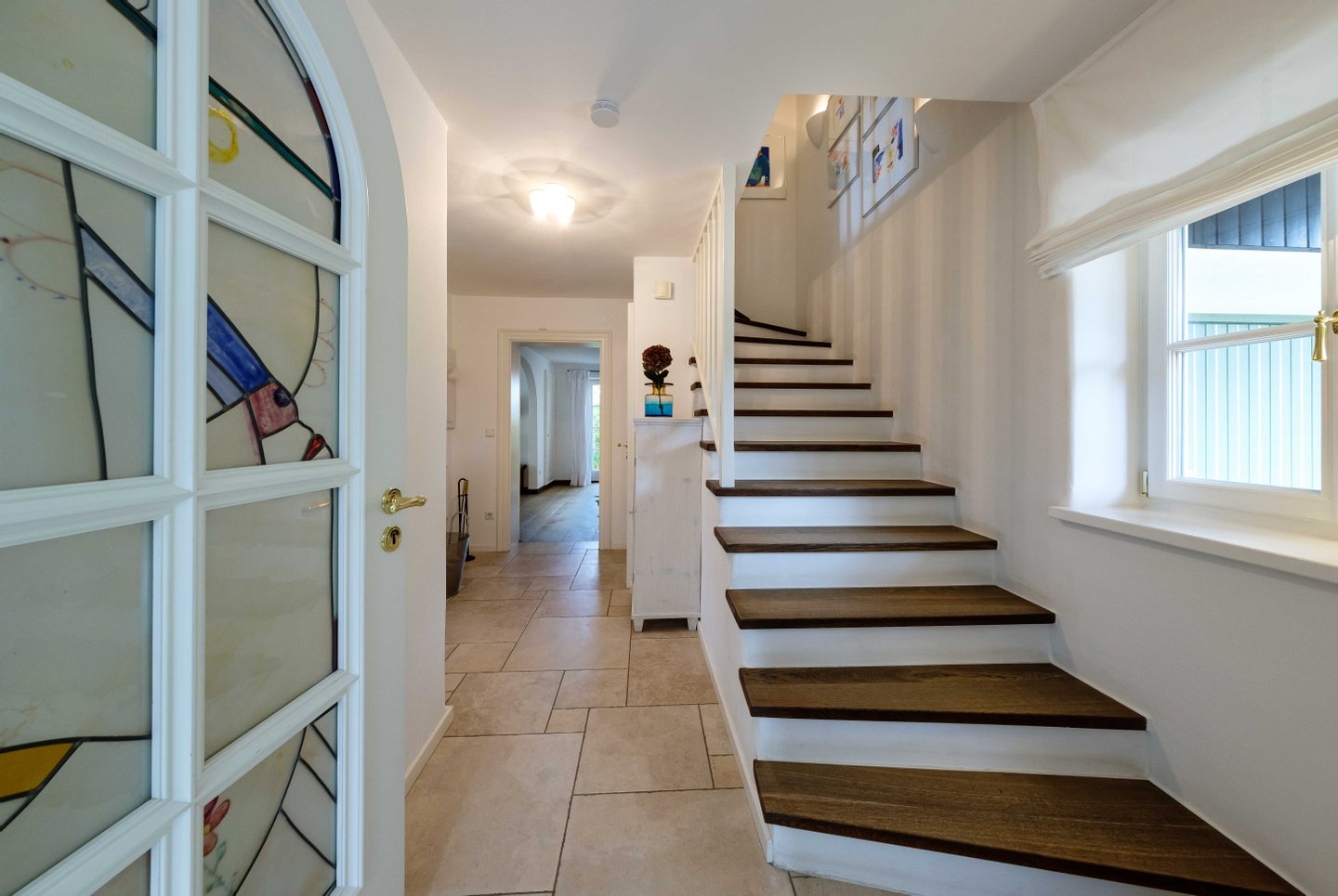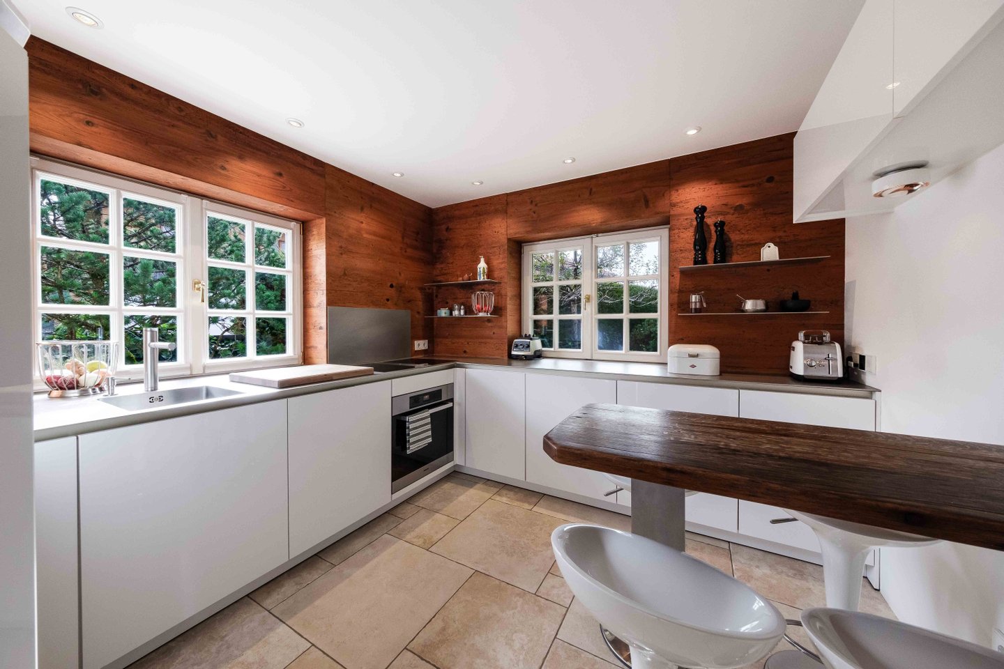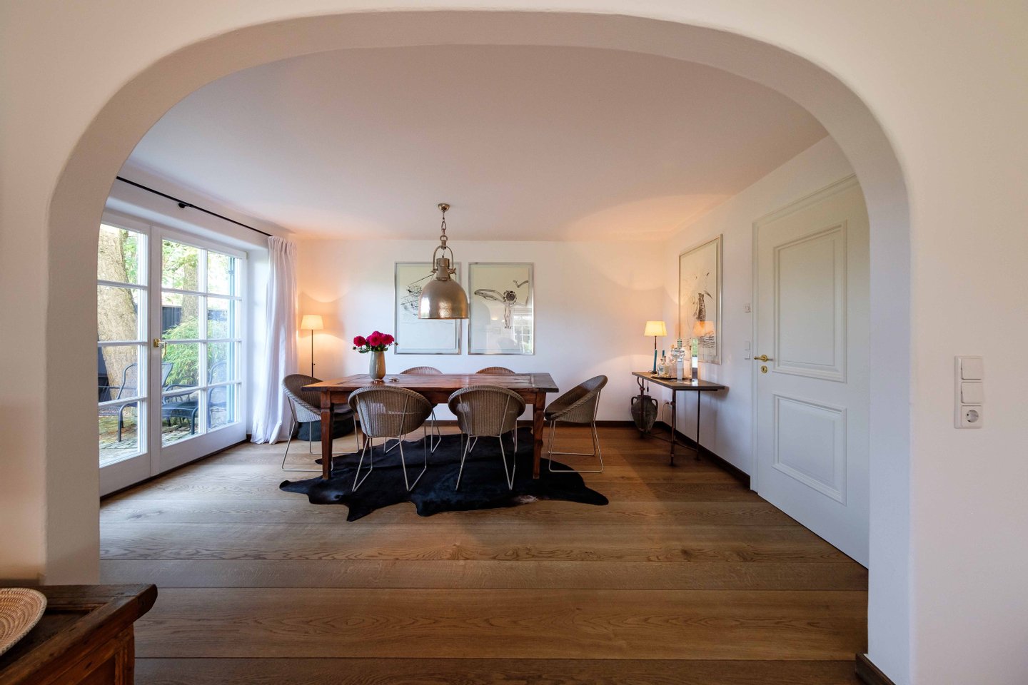 Ein großzügiger Wohn- / Essbereich mit Kachelofen im Erdgeschoss sowie ein harmonisch aufgeteilter Grundriss im Obergeschoss lassen in Kombination mit stilvollen Materialien ein wertiges Wohngefühl entstehen. Der nach Süd-Westen ausgerichtete Garten mit Natursteinterrassen und akzentuierter Beleuchtung verleiht der Immobilie auch im Außenbereich ein Ambiente, das zum Verweilen einlädt. Die in den Sommermonaten lange strahlende Abendsonne rundet die ruhige Lage perfekt ab.