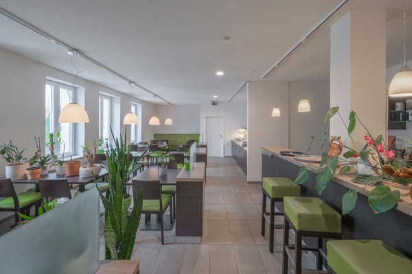 Erdgeschoss: Rezeption, Frühstücksraum, Toiletten, Personalraum, Waschküche, Lager