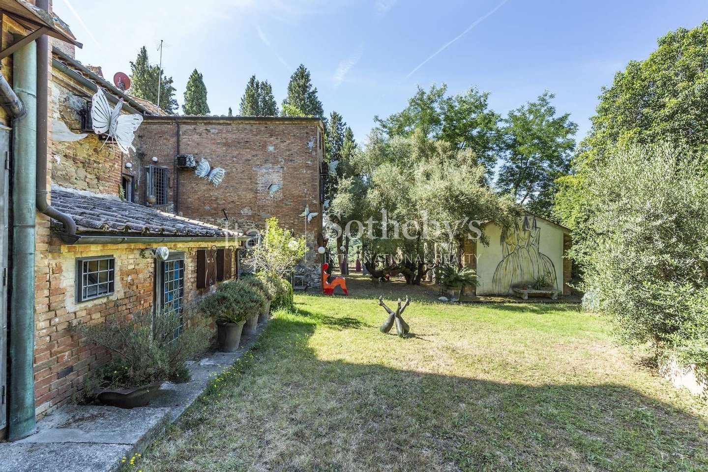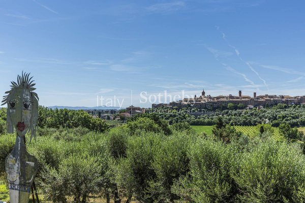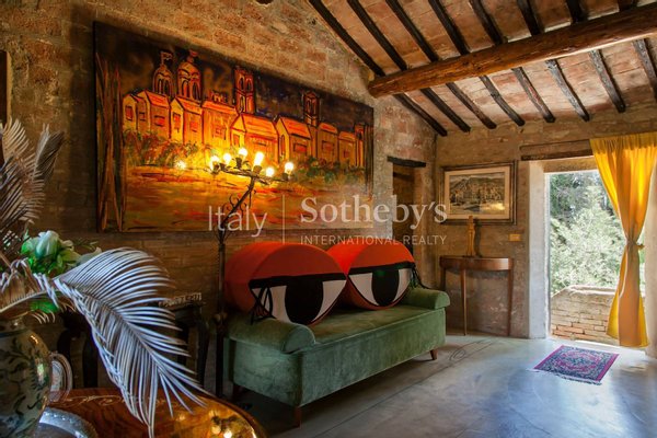 Auf einem Hügel mit Blick auf Torrita di Siena liegt dieses Anwesen, das an der Stelle des einstigen historischen Dorfes des Ortes errichtet wurde. Umgeben von der toskanischen Landschaft und doch nur wenige Minuten von allen Annehmlichkeiten entfernt, wurde diese Immobilie im Jahr 2000 von der Künstlerin Anna Izzo, einer Malerin und Bildhauerin, vollständig restauriert. Ihre Kunst ist „bestrebt, den Blick zu erhellen und die Augen zu öffnen, indem sie Zweifel, Bilder und tief verwurzelte Konzepte der menschlichen Kultur in Frage stellt', wie ihre Kuratorin betont, und sie drückt einen starken psychologischen Feminismus aus, der kollektive Gewohnheiten aufbricht und infrage stellt.
