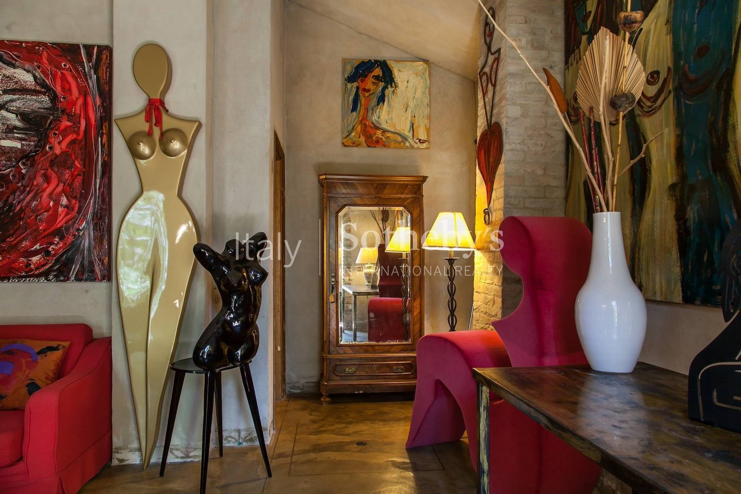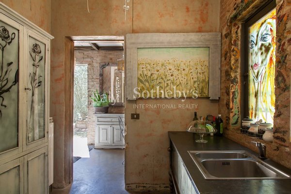 Das aus Stein und Ziegeln erbaute Gebäude befindet sich neben einer kleinen Kirche, die der Madonna dell'Ulivo gewidmet ist. Das Anwesen ist von ca. 3660 m² Land mit Olivenbäumen umgeben, und es besteht die Möglichkeit, im Erdgeschoss, wo sich einst die alten Weinkeller befanden, einen Pool zu errichten. Ein zauberhafter Ort, an dem Geschichte und Kunst miteinander verschmelzen, hochzeiten ausrichten und eine besondere Atmosphäre schaffen - ideal auch als privater Wohnsitz, da die Innenräume leicht umgestaltet werden können, um eine einzige, großzügige Wohneinheit zu schaffen.