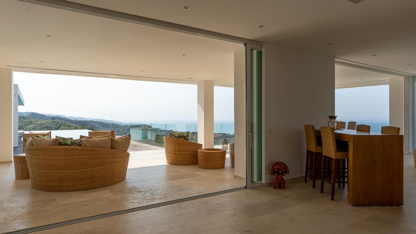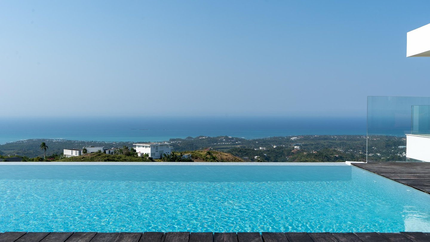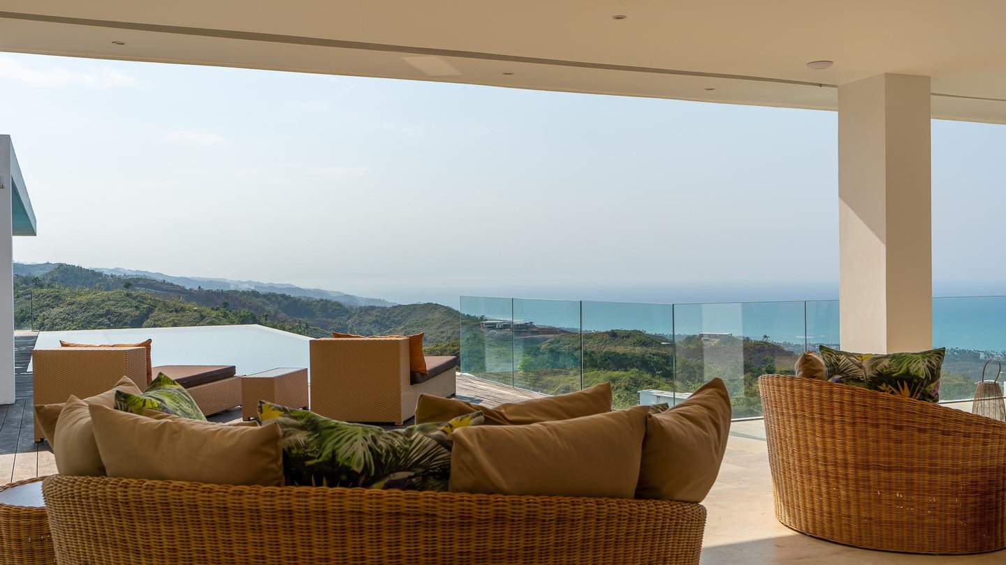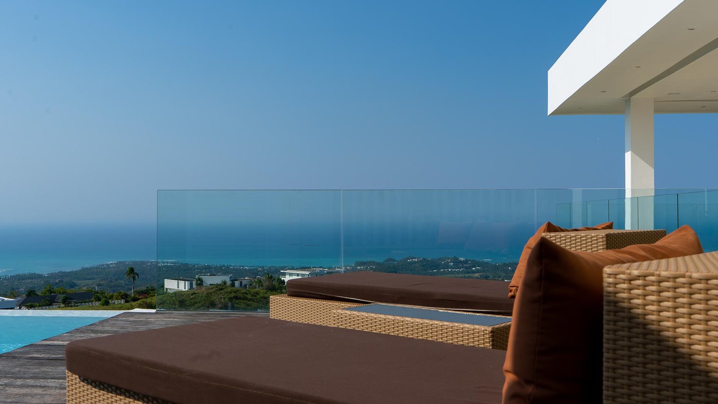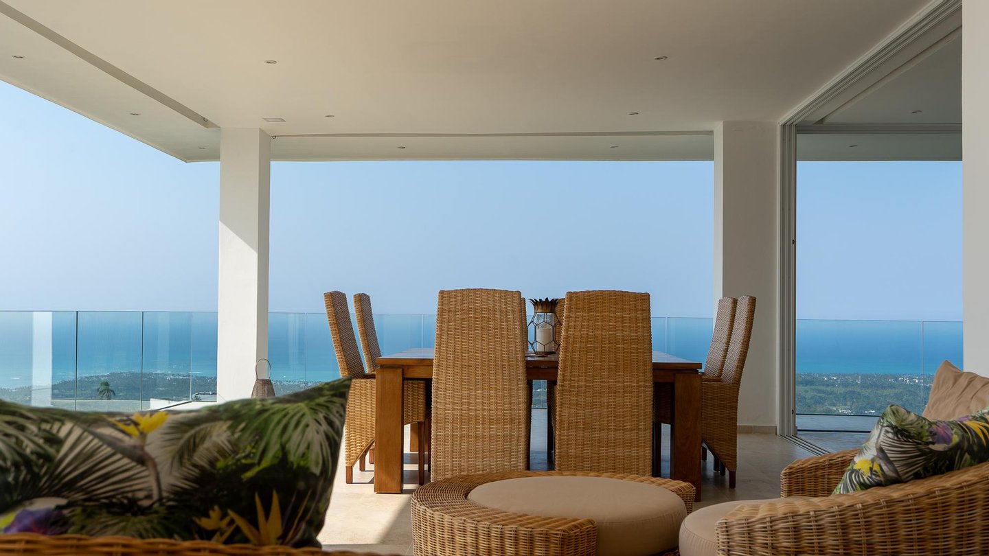 Luxusvilla in der Nähe von Las Terrenas zu verkaufen, mit atemberaubendem 180-Grad-Meerblick in Jamito, in der Nähe von Las Terrenas. Diese Luxusvilla befindet sich in einer sicheren und gut organisierten Residenz mit anderen Villen, die das ganze