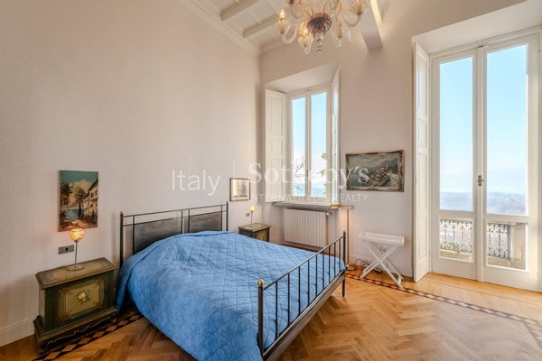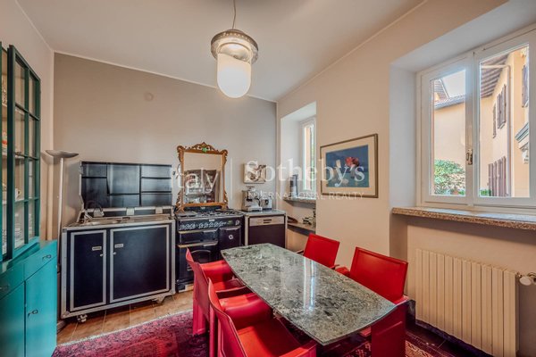 Set within a 19th-century villa, it is the only apartment created from an ancient hermitage dating back to the 1300s. The interiors are characterized by high-quality vintage details, such as finely preserved frescoes and wooden beam ceilings, which add warmth and character to the spaces. The spacious and bright living area is enhanced by a magnificent decorative fireplace. Large windows overlooking the lake capture the surrounding natural beauty, offering extraordinary light and breathtaking views.