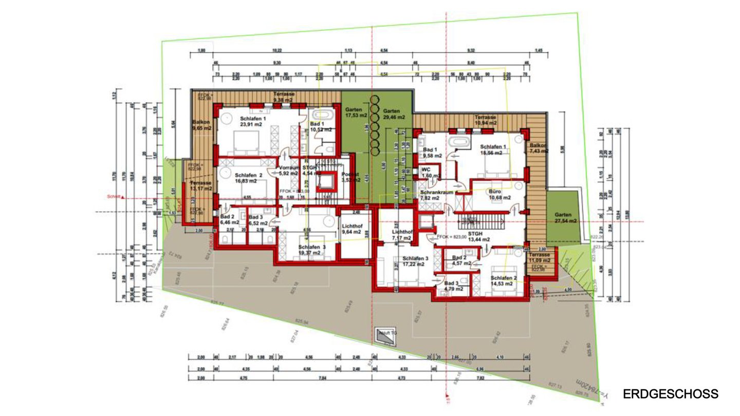 Es liegt bereits eine rechtskräftige Baugenehmigung für zwei Luxusvillen und ein Abbruchbescheid für den Altbestand vor.