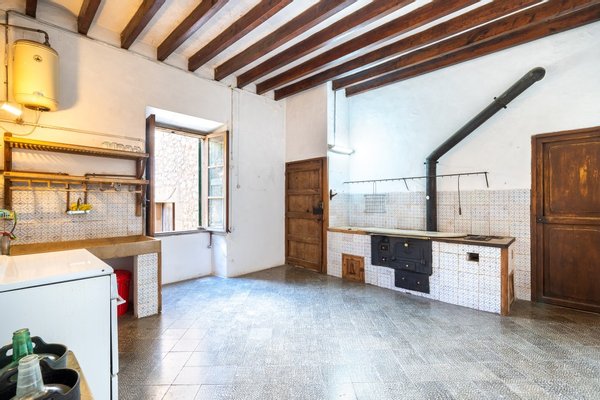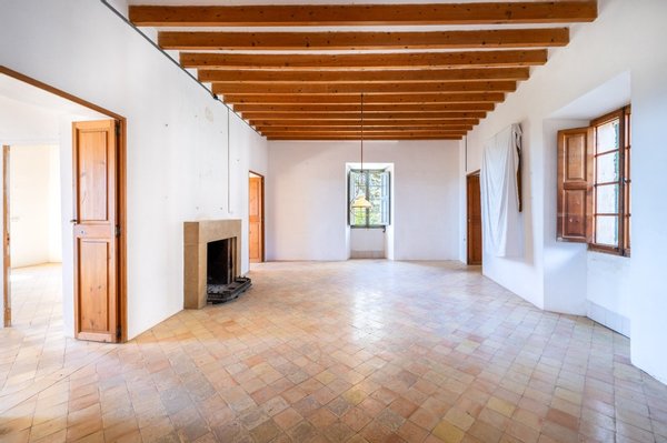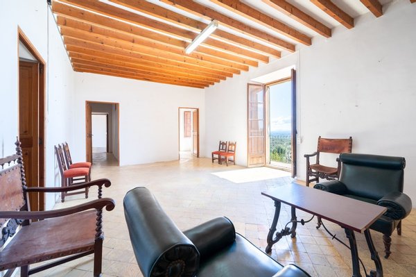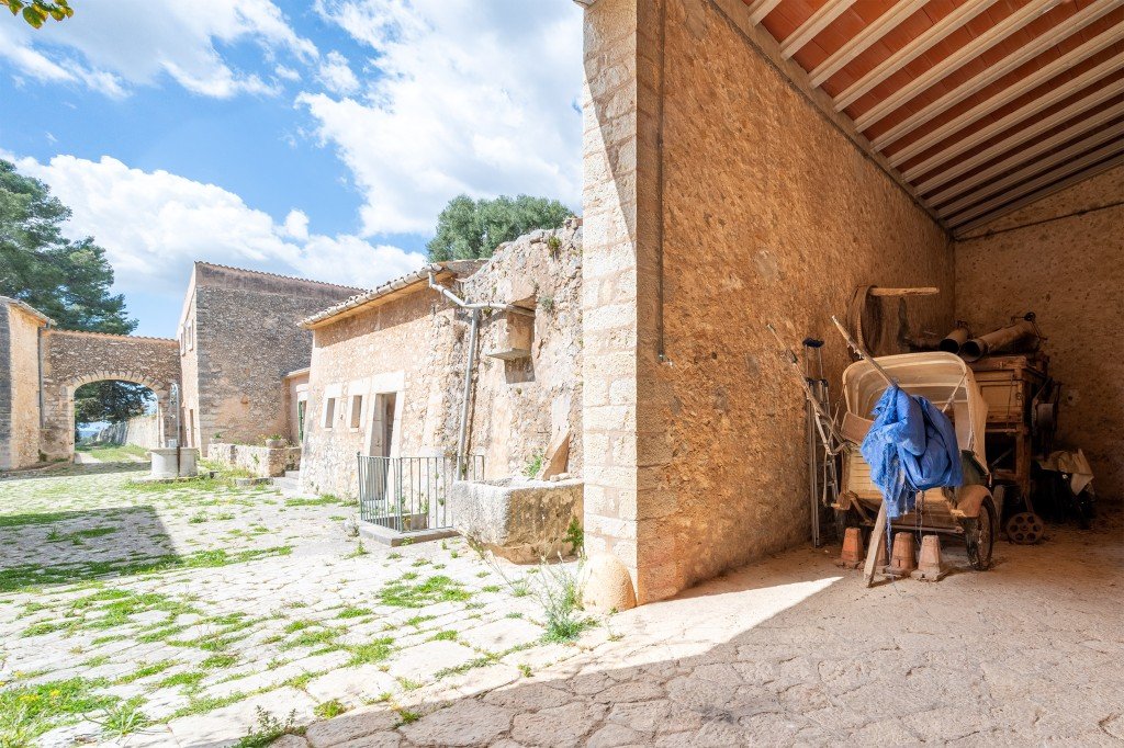 Das historische Anwesen stammt aus dem 16. Jahrhundert und besteht aus einem dreistöckigen Haupthaus, einem Nebenhaus und mehreren Nebengebäuden, darunter eine Ölmühle und verschiedene Lagerräume. Die Wohngebäude sind u-förmig um einen traditionellen mallorquinischen Innenhof mit einem Brunnen angeordnet. Es gibt insgesamt 10 Schlafzimmer und 3 Bäder. Die Finca ist renovierungsbedürftig.