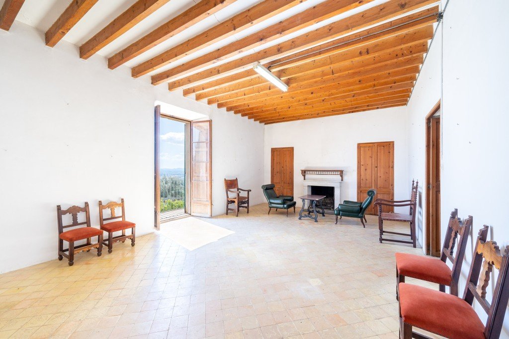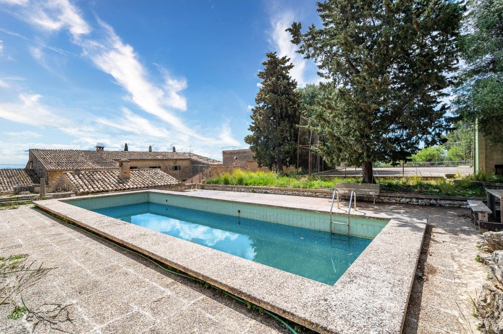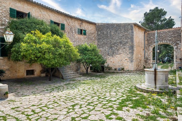 Das historische Anwesen stammt aus dem 16. Jahrhundert und besteht aus einem dreistöckigen Haupthaus, einem Nebenhaus und mehreren Nebengebäuden, darunter eine Ölmühle und verschiedene Lagerräume. Die Wohngebäude sind u-förmig um einen traditionellen mallorquinischen Innenhof mit einem Brunnen angeordnet. Es gibt insgesamt 10 Schlafzimmer und 3 Bäder. Die Finca ist renovierungsbedürftig.