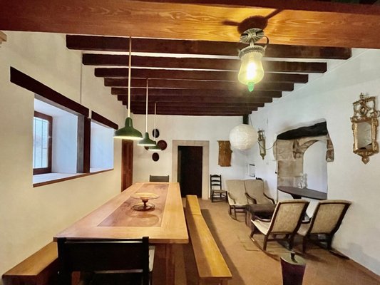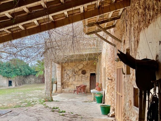 Das malerische Haupthaus aus traditionellen mallorquinischen Steinen erstreckt sich über zwei Etagen und bietet rund 920 m2 rustikal bebaute Fläche. Ergänzt wird das Anwesen durch eine Reihe von landwirtschaftlichen Gebäuden, die zusammen etwa 820 m2 umfassen. Dieses historische Juwel hat das Potenzial, sich in ein majestätisches Refugium zu verwandeln, das sowohl geschichtsträchtige Eleganz als auch modernen Komfort vereint.