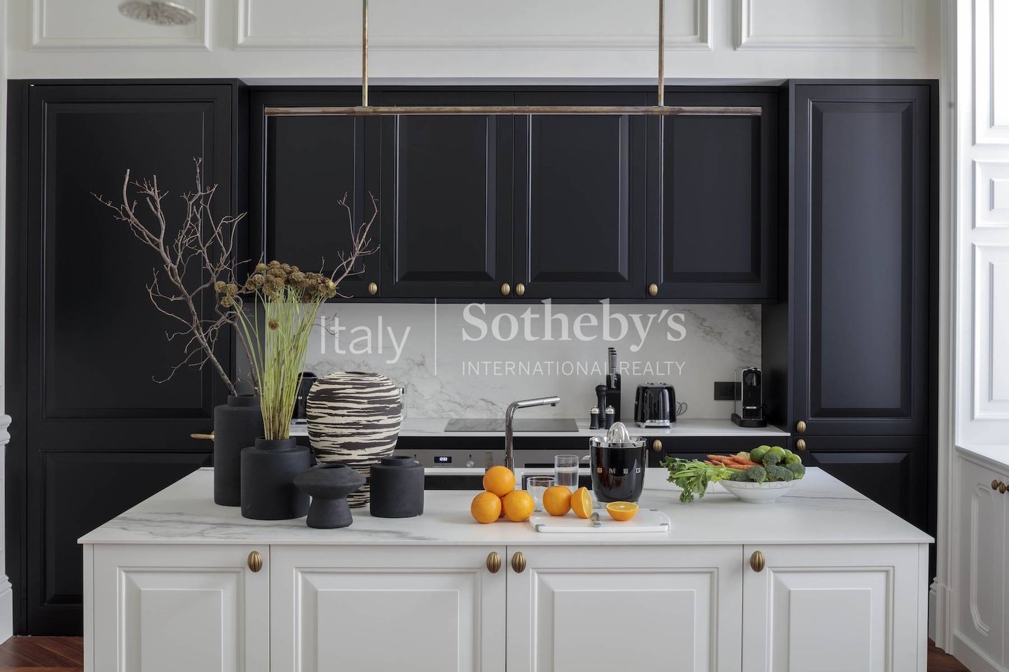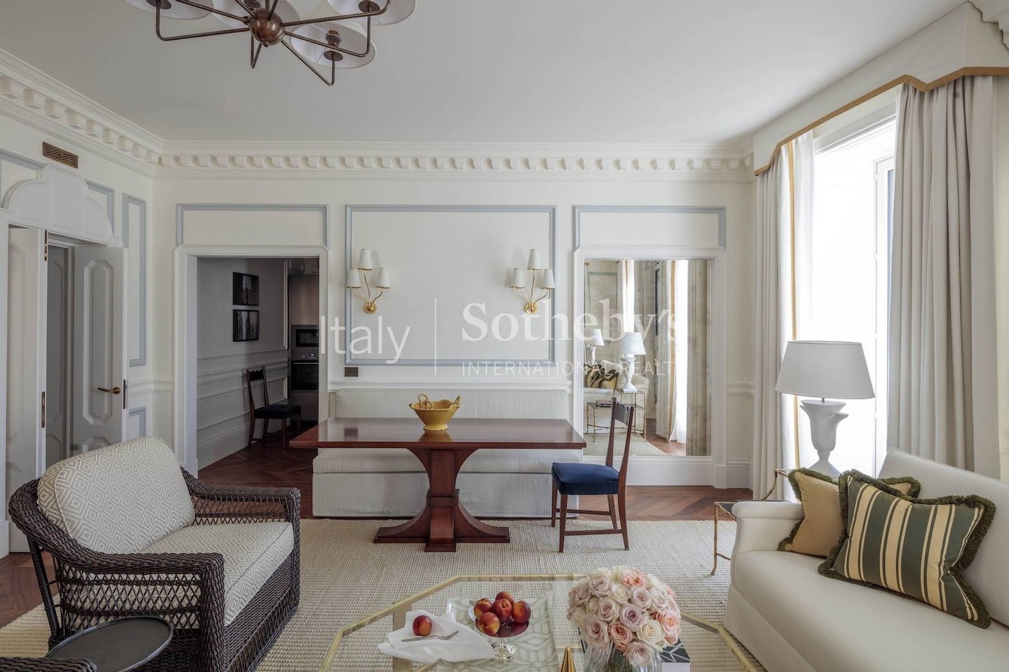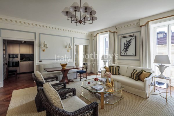 Jedes Apartment ist mit handverlesenen Möbelstücken eingerichtet, die den raffinierten Stil und die einzigartige Atmosphäre der Stadt widerspiegeln. Der private Balkon, der auf die Via Manzoni und die Via della Spiga blickt, lädt dazu ein, die malerische Aussicht zu genießen. Im Inneren führt das geräumige Schlafzimmer zu einem gemütlichen Wohnzimmer, das perfekt für entspannte Momente ist. Der Essbereich und die voll ausgestattete Küche bieten eine intime und private Atmosphäre, ideal sowohl für geselliges Beisammensein als auch für Ruhe und Privatsphäre.