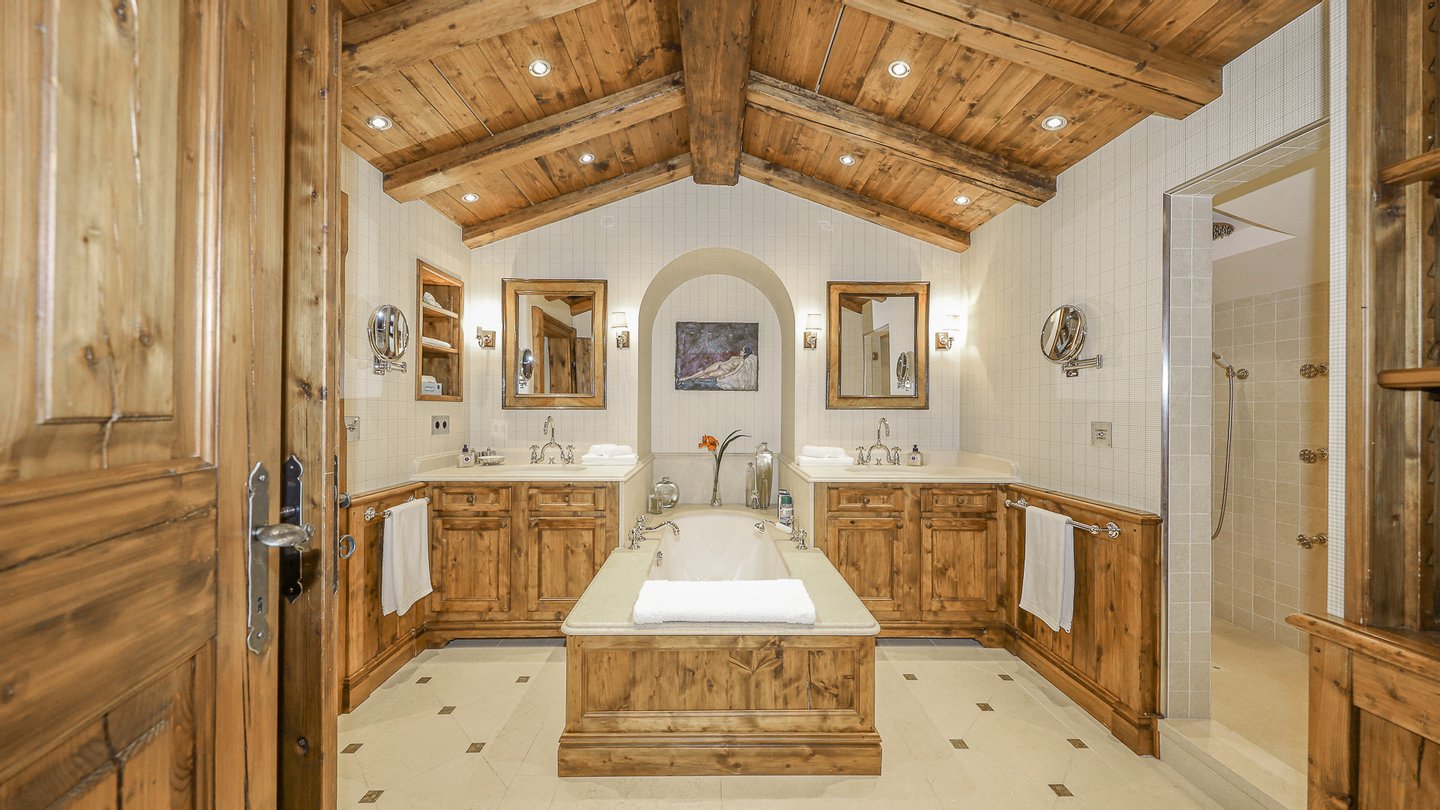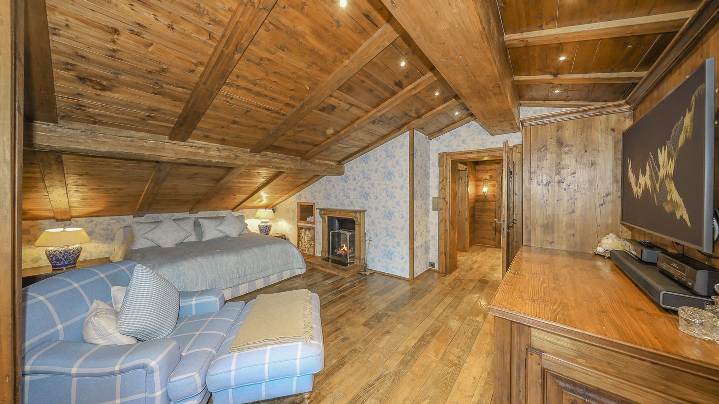 Im Dachgeschoss ist der große Masterbedroom mit Kamin, angrenzendem Kinderzimmer und zwei Ankleiden sowie einem weiteren Badezimmer situiert. Vom Masterschlafzimmer gelangt man auf einen weiteren Balkon.