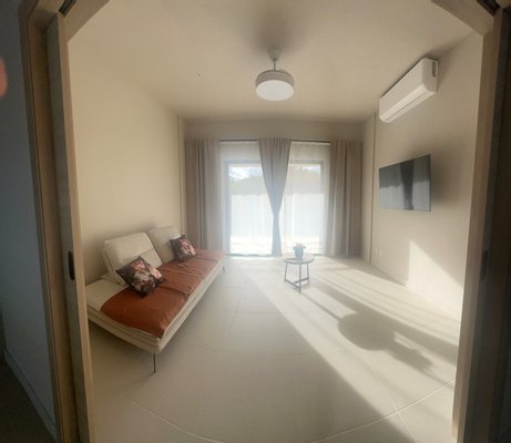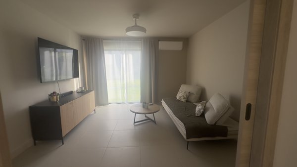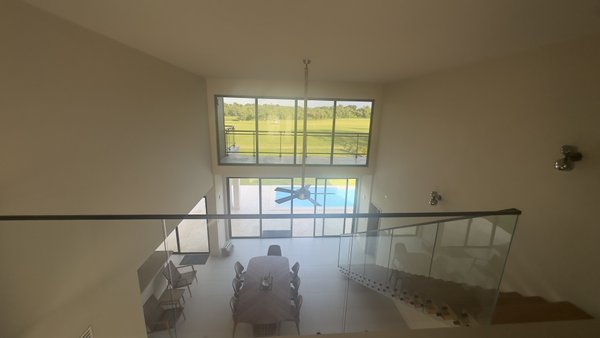 Auf der ersten Ebene befindet sich ein großer Raum, von dem aus Sie einen herrlichen Blick auf die Terrasse, den Innenhof und den Golfplatz haben, durch die Fenster des Wohnzimmers integriert sich die Terrasse mit ihrem Pool. Auf der rechten Seite finden wir das Gästebad, den Flur zur Küche und zum Esszimmer, wir finden auch die Unterstützungsbereiche (Serviceraum und Wäscherei). Auf der linken Seite finden wir ein Gästezimmer mit eigenem Bad, das einen schönen Blick auf den Golfplatz und direkten Zugang zum Innenhof und zur Terrasse bietet.