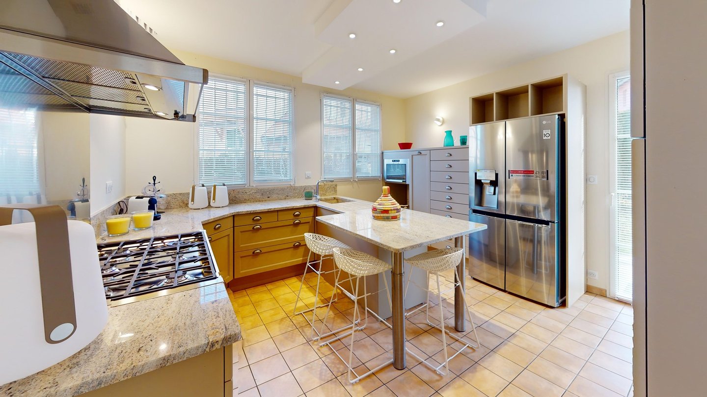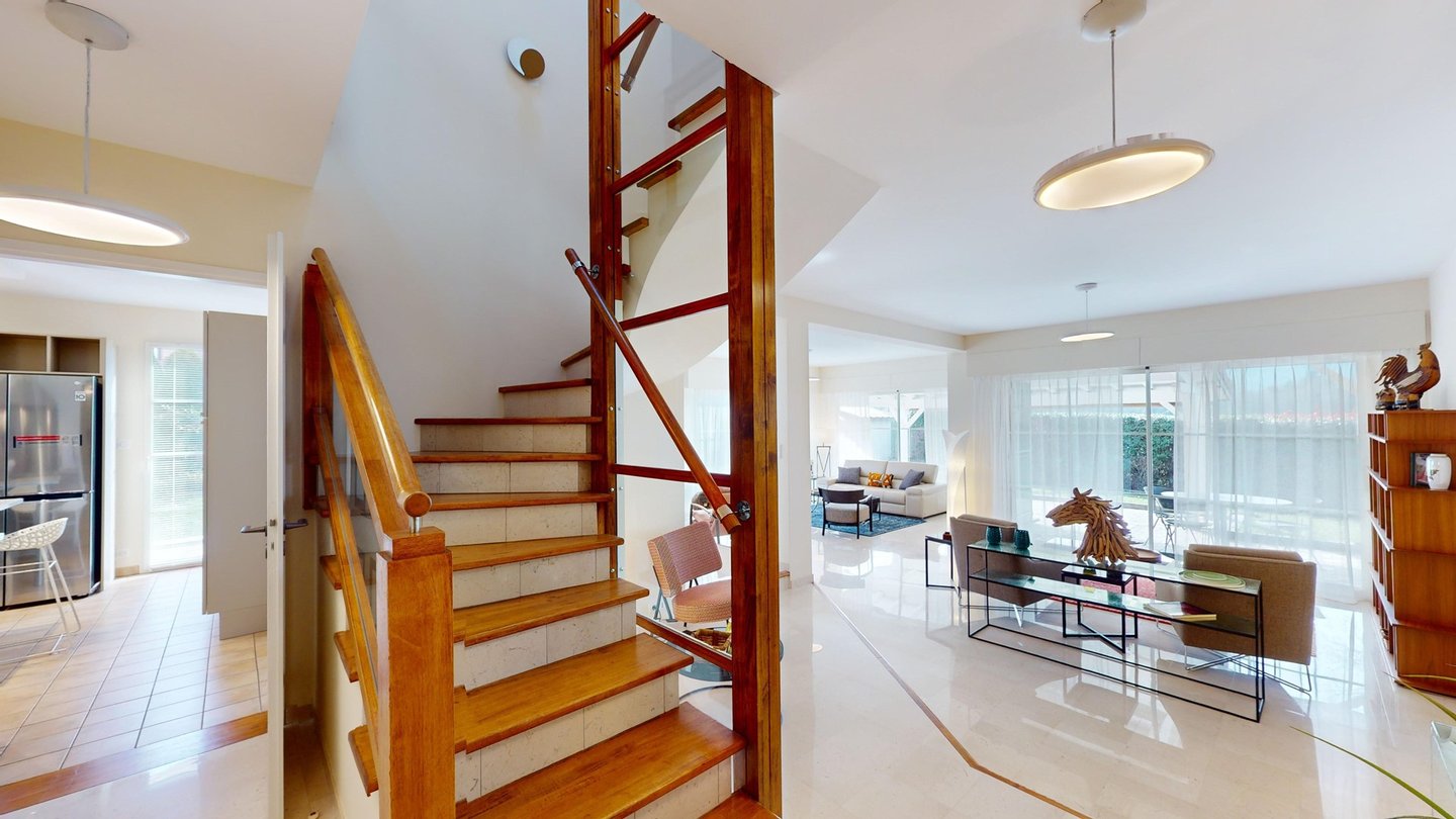 Im Erdgeschoss finden Sie einen Eingang, ein Gäste-WC, eine voll ausgestattete und geschlossene Küche sowie ein großes Doppelwohnzimmer von mehr als 60m². Ein Schlafzimmer oder Büro mit eigenem Bad öffnet sich zur Terrasse und umfasst ein Ankleidezimmer und ein Duschbad mit WC.