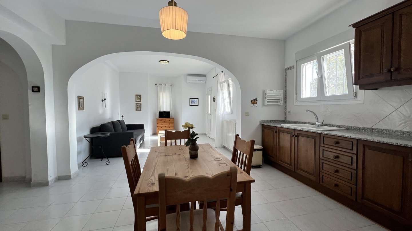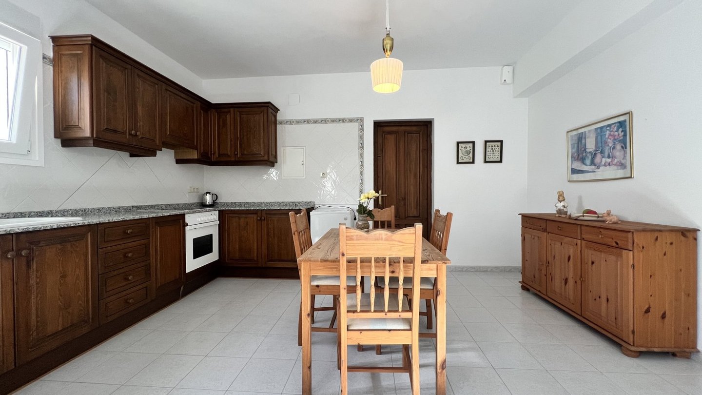 Auf der Hauptebene finden sich drei elegante Schlafzimmer, die jeweils über ein eigenes Badezimmer verfügen und dadurch höchsten Komfort und Privatsphäre garantieren. Das großzügige Wohnzimmer mit seinen extra großen Panoramafenstern bietet einen unvergesslichen Blick auf das Mittelmeer und die malerische Umgebung. Die angrenzende Küche ist großzügig und funktional gestaltet.