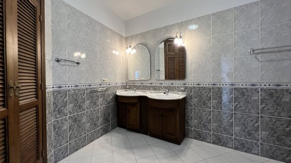 Das Haus verfügt zusätzlich über eine separate Gästewohnung im unteren Bereich. Diese bietet ein Wohnzimmer, eine Küche, ein Schlafzimmer und ein Badezimmer und ist damit ideal für Gäste oder als unabhängiger Bereich für Familienmitglieder.
