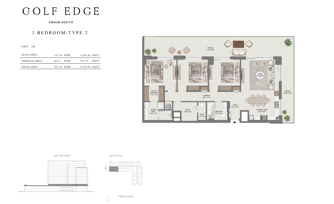 Für Ihre Freizeitgestaltung und Entspannung steht Ihnen ein hochmodernes Fitnesscenter, ein Skatepark, ein Clubhaus und Mehrzweckplätze zur Verfügung. Hier finden Sie endlose Möglichkeiten, aktiv zu sein. Entdecken Sie die Vorzüge des Wohnens in dieser großzügigen Wohnung in der Golf Edge Community - eine perfekte Kombination aus Luxus und Lebensqualität.
