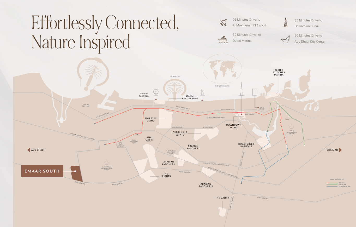 Willkommen in Emaar South, einem aufstrebenden Stadtteil in Dubai, der sich durch Vielfalt und Lebensqualität auszeichnet.