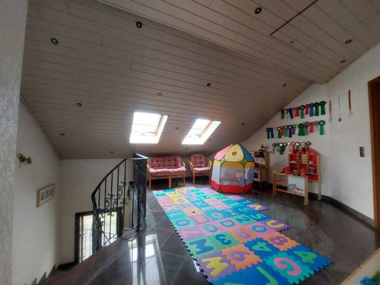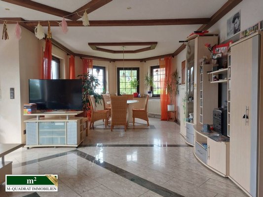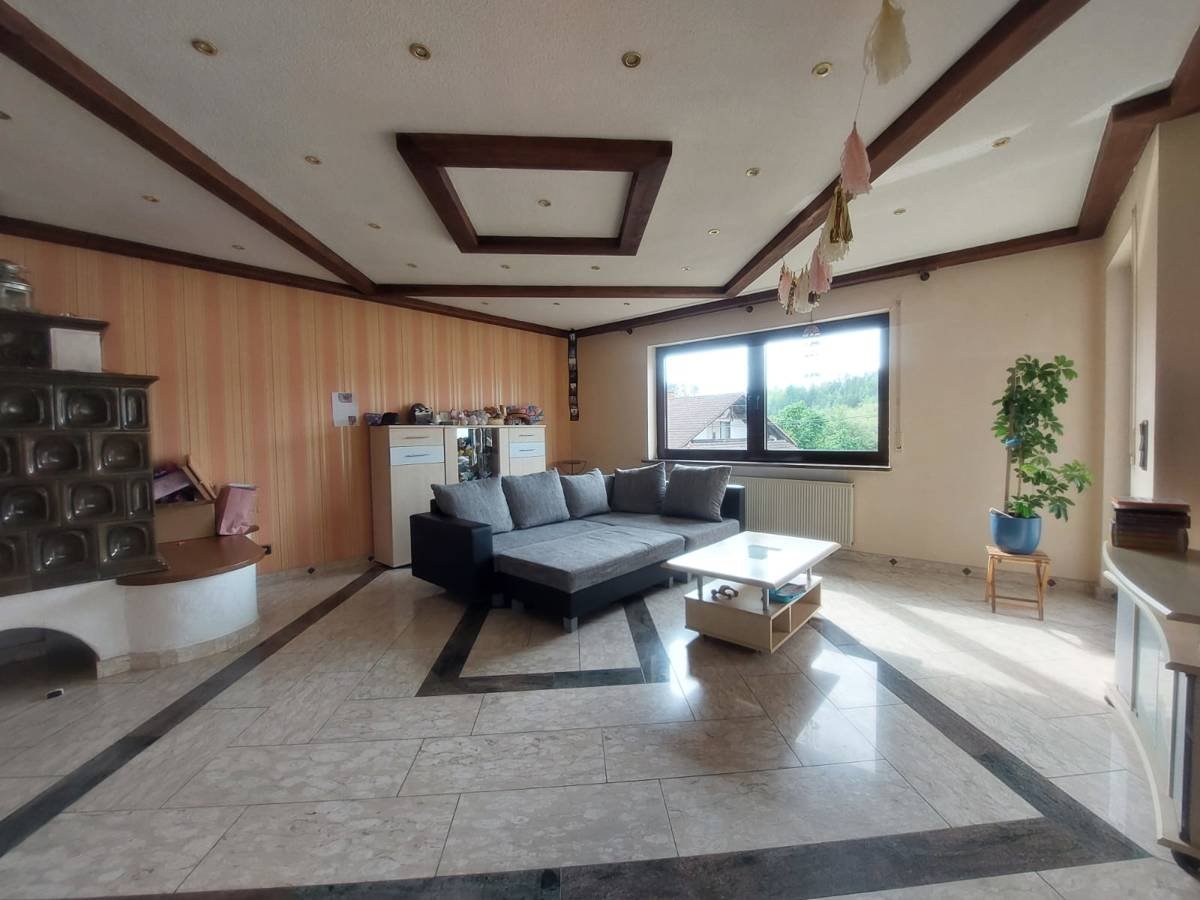 Die Immobilie verfügt über zwei Eingänge: Souterraineingang: Sie erreichen die innenliegende Garage, Vorratslager, HWS-Raum mit Dusche, WC separat, Flur, Heizraum, Tankraum, Hausanschlussraum; weiter geht es zur mittleren Ebene, die Sie sowohl über die Innen-Treppe, als auch von außen über die Haupteingangstür erreichen. Hier öffnet sich im EG ein großzügiger Eingangsbereich. Sie finden ein Gästebad, ein Familienbad, ein Schlafzimmer, eine Küche mit angrenzender Speisekammer vor. Der großzügige Balkon wird vom Wohn-Esszimmer und Schlafzimmer erreicht . Das Wohnzimmer verfügt über einen imposanten Kachelofen, der neben der Zentralheizung eine wohlige Wärme ausstrahlt. Sowohl in den Bädern, der Diele und im Wohn-Ess-Zimmer wurde der Fußboden mit einem hochwertigem Granitboden versehen. Eine Besonderheit strahlt von der Wohnzimmer-und Dielen-Decke aus, diese sind mit kreativen Holzelementen und Beleuchtung versehen. Über die offene Treppe,- die Treppenstufen sind auch hier aus hochwertigem Granit gefertigt, erreichen Sie die Diele im OG, diese führt zu einem Arbeitszimmer mit schönem Parkettfußboden; ein Duschbad und ein weiteres Zimmer schließen sich an. Die Loggia mit Weitblick ergänzt das schöne Wohngefühl. Zusätzlich ist über eine Bodentreppe ein Dachboden zu erreichen.