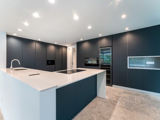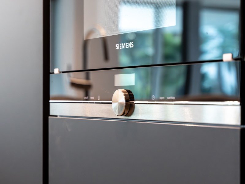 Die offene Küche, die komplett mit modernsten Siemens-Geräten ausgestattet ist und einen eleganten und funktionalen Raum für Familienfeiern und Mahlzeiten schafft.