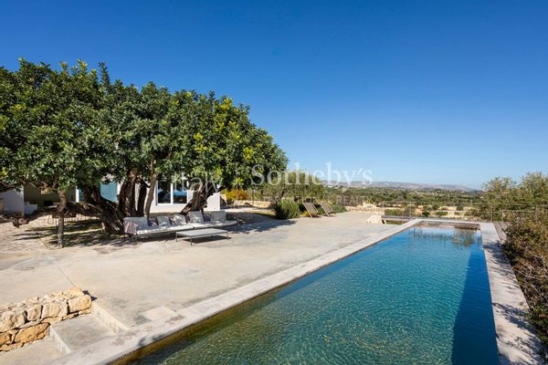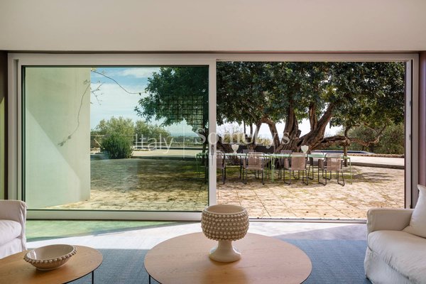Eingebettet in die malerische Landschaft Siziliens, zwischen dem intensiven Duft der Johannisbrotbäume und dem zeitlosen Charme der jahrhundertealten Olivenbäume, ist dieses Anwesen ein architektonisches Meisterwerk, das Tradition und Moderne in