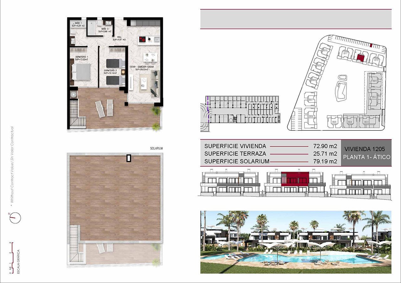 Die Wohnanlage befindet sich in ruhiger Lage in der internationalen Urbanisation Ciudad Quesada, ca. 3 km südlich vom Golfplatz La Marquesa und ca. 6 km westlich vom am Meer gelegenen Ort Guardamar del Segura mit seinen wunderschönen Stränden. Und auch der Salzsee von La Mata ist nicht weit entfernt. Die ersten Häuser in der Umgebung dieser Anlage entstanden bereits vor mehr als 40 Jahren und so entwickelte sich quasi eine neue Ortschaft mit Villen, Reihenhäusern und Appartements, in der ein umfangreiches Sportangebot wie 18-Loch-Golfplatz (ca. 3 km entfernt), Tennis, Reiten, Schwimmen etc. geboten wird.