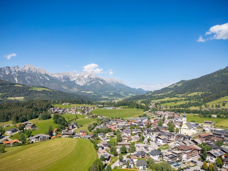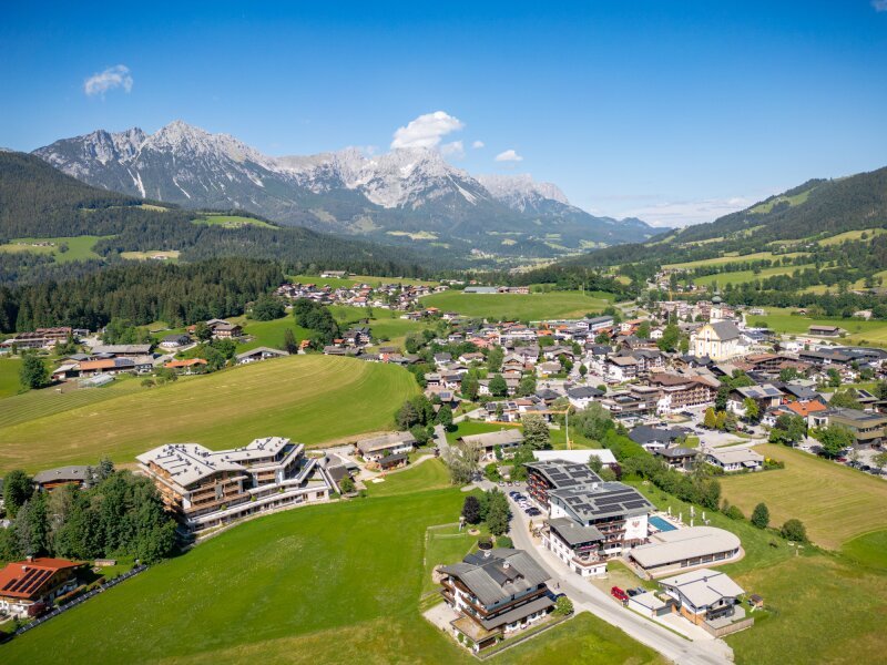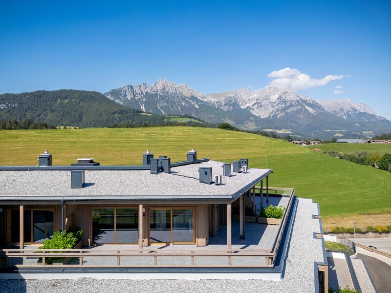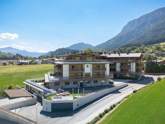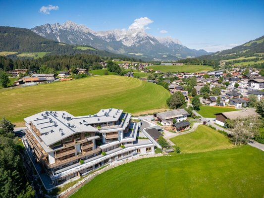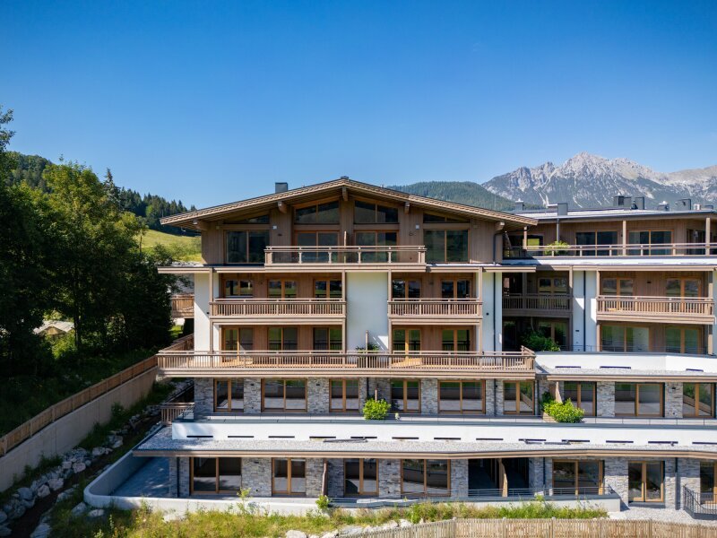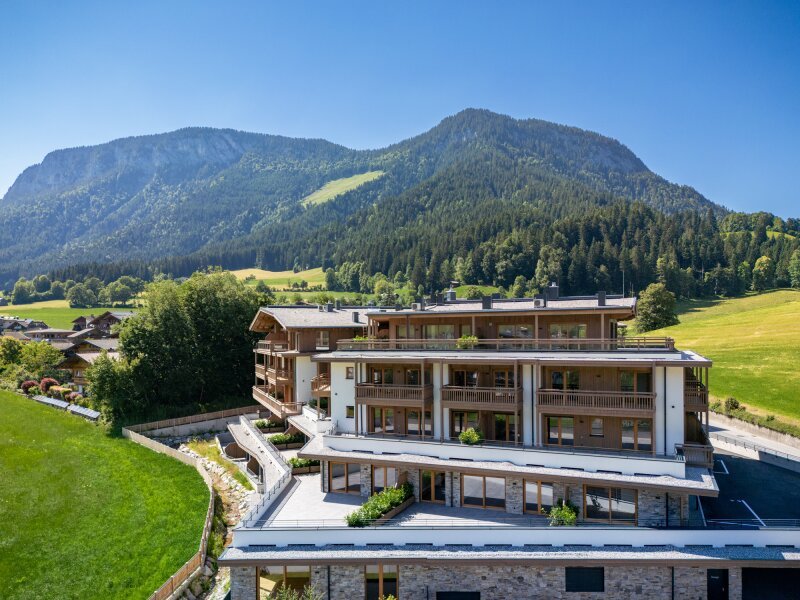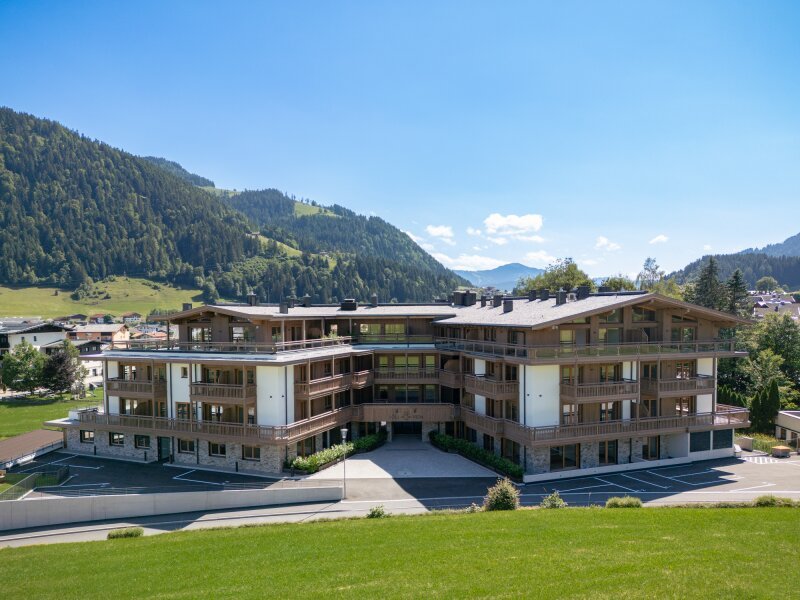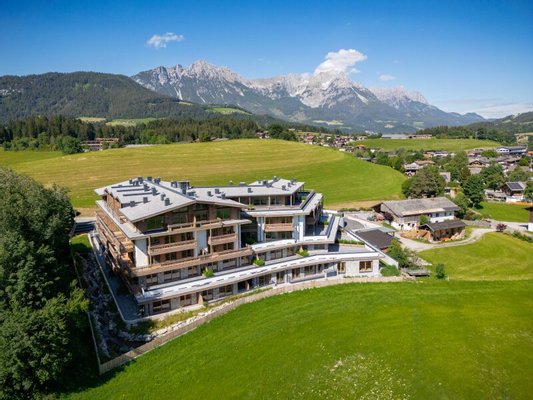 Mit den "Söllvida Residences" ist 2023 an diesem sonnigen Platz ein prachtvolles Projekt mit 46 Apartments im modern ländlichen Stil erbaut worden. Der Blick in die umgebende Bergwelt ist bezaubernd. Den Ortskern von Söll mit all seinen gemütlichen