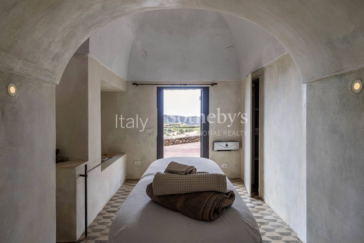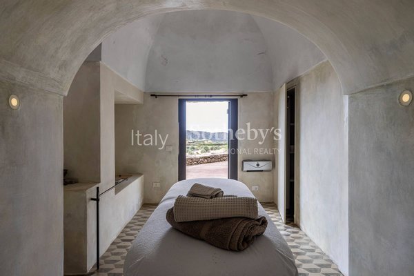 Die Residenz bietet eine Innen- und Außenküche, ein Esszimmer, ein Wohnzimmer und ein Schlafzimmer mit eigenem Bad und Außenbereichen. Die anderen Zimmer, ebenfalls mit eigenem Bad, bieten private Lounges und höchste Privatsphäre. Am Ende des Anwesens befinden sich ein Massage-Raum und ein Hamam. Jeder Raum bietet einen wunderbaren Blick auf das Meer und Innenräume, die die Geschichte von Pantelleria widerspiegeln.