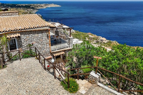 Inmitten des üppigen mediterranen Gestrüpps entlang der sizilianischen Küste, nur eine kurze Entfernung von San Vito Lo Capo entfernt, steht diese bezaubernde Villa mit Blick auf das Meer. M