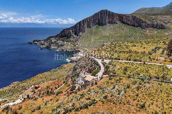 Inmitten des üppigen mediterranen Gestrüpps entlang der sizilianischen Küste, nur eine kurze Entfernung von San Vito Lo Capo entfernt, steht diese bezaubernde Villa mit Blick auf das Meer. M