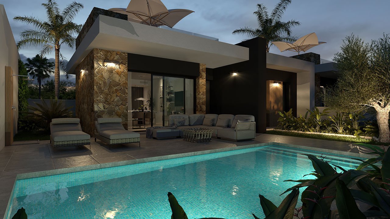 Die reizvolle Wohnanlage in Ciudad Quesada besteht aus 50 modernen ein- und zweigeschossigen Villen mit 3 Schlafzimmern und 2 bis 3 Bädern. Die Villen haben großzügige Dachterrassen sowie Privatpools und Kfz-Stellplätze auf dem eigenen Grundstück.
