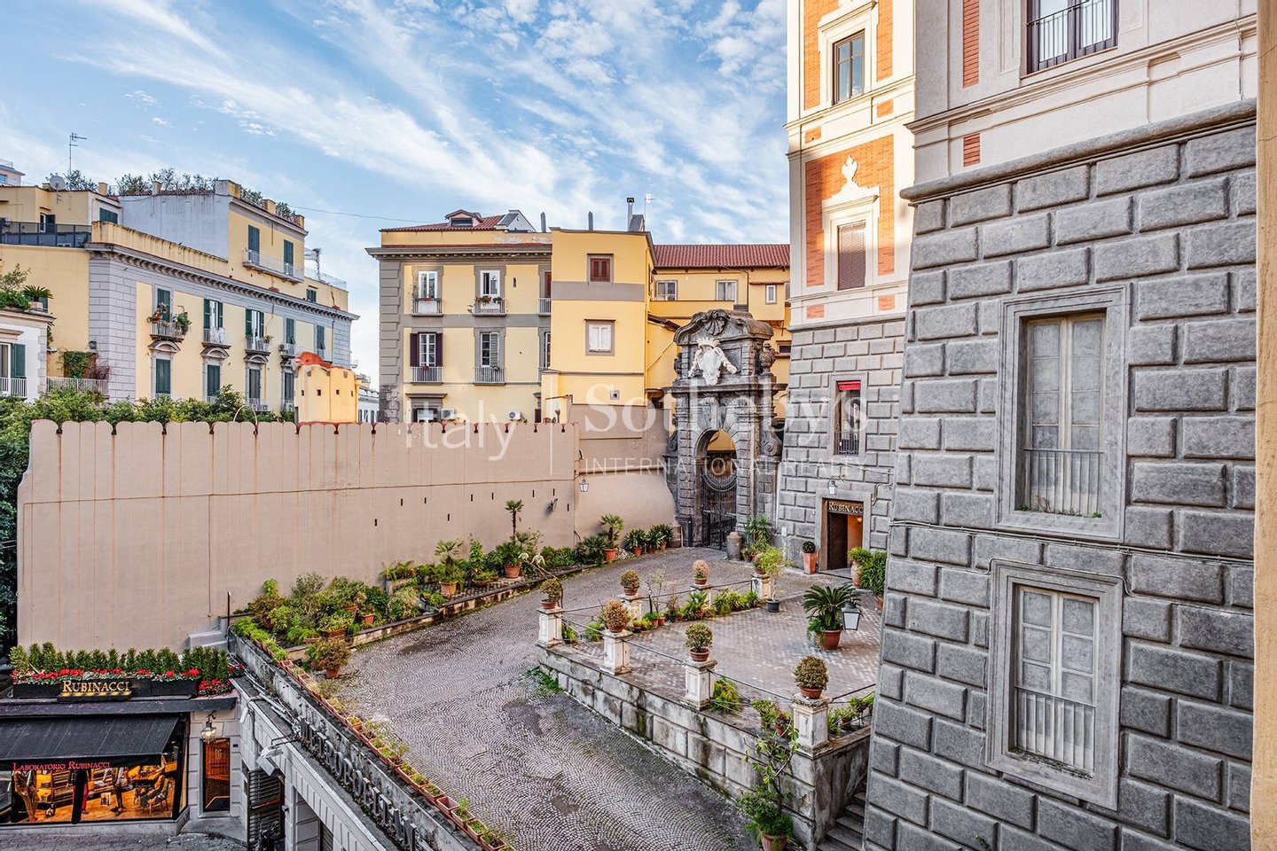 In the beating heart of Naples, on Via Chiaia, stands Palazzetto Cellammare, a residence with timeless charm, a keeper of history and refinement. The Palazzetto, of more than 1000sqm, is spread over four levels, of which the ground floor has 4 street-facing openings while the penthouse floor overlooks a striking rooftop. The rooms of large square footage, and for the most part overlooking Via Chiaia, are perfectly adaptable to different needs. The scenic access introduces bright and airy spaces, where natural light enhances period architectural details, in a perfect balance between historical legacy and contemporary functionality. The privileged location, just steps away from the artistic and cultural wonders of the city, makes this property a unique opportunity for those who wish to live or work in a context of absolute exclusivity. A palazzetto that embodies the essence of Neapolitan elegance, in a perfect dialogue between past and present.