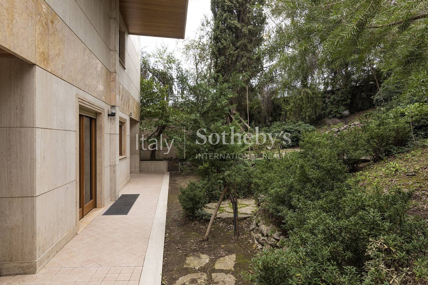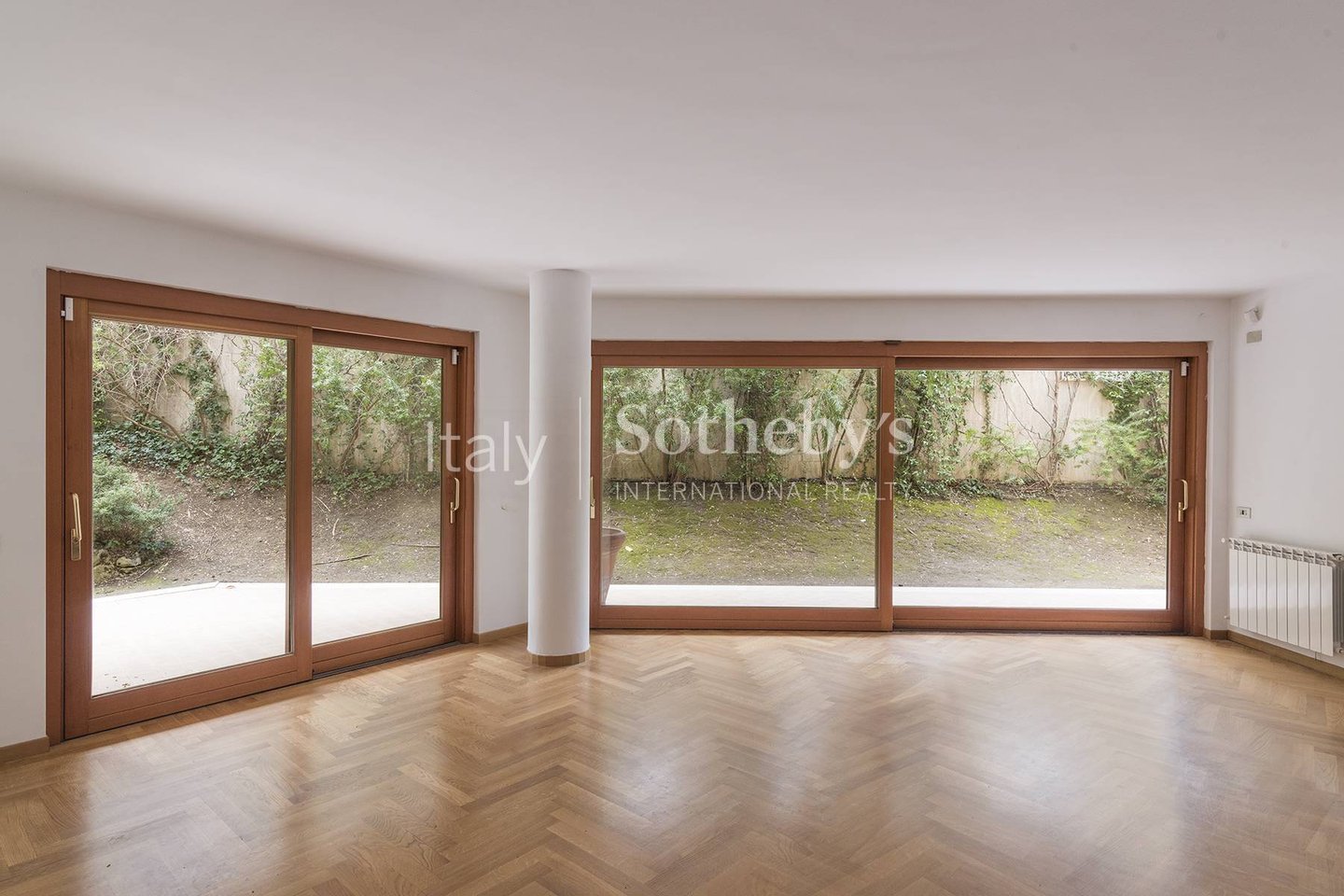 Located in the Camilluccia district, one of Rome's most exclusive areas, the property is surrounded by prestigious villas, centuries-old trees, and a tranquil atmosphere. Historic residences, well-maintained streets, and elegant gardens blend seamlessly with a selection of fine dining options, creating a unique and sophisticated setting.