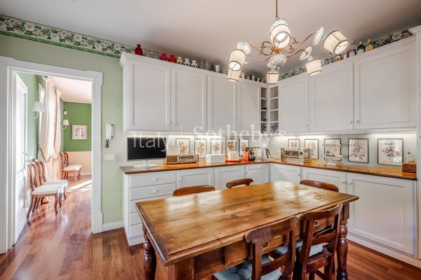 The property is on two levels, in addition to a bright attic with private bathroom. The ground floor hosts a large kitchen, which overlooks the dining room, a large living room and an intimate lounge dedicated to reading with a marble fireplace, as well as a guest bathroom. In the basement there are three spacious bedrooms and three bathrooms, two of which are en suite, a practical laundry room, a spacious walk-in closet and some accessory rooms.