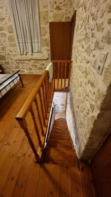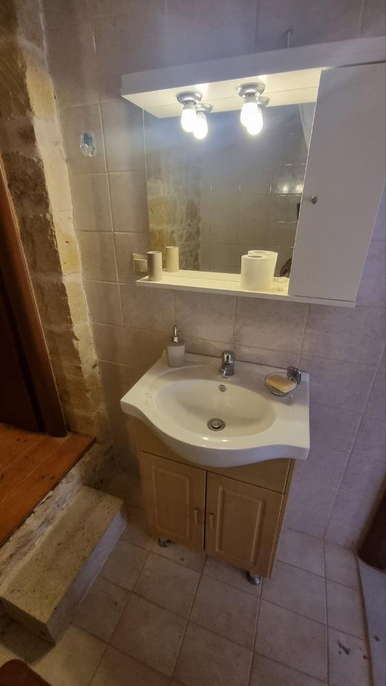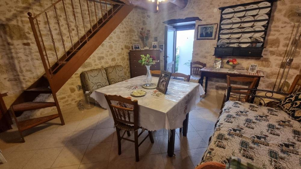 Gorgolaini, Agios Myronas: Exzellentes Einfamilienhaus aus Stein, Maisonette, renoviert, 150 m², auf einem Grundstück von 216 m², Erdgeschoss und 1. Stock, 2 Schlafzimmer, 1 Badezimmer, 1 WC, möbliert, mit Hof, Kamin, Keller. Es verfügt über ein externes Lager (Altbau) von 30 Quadratmetern.