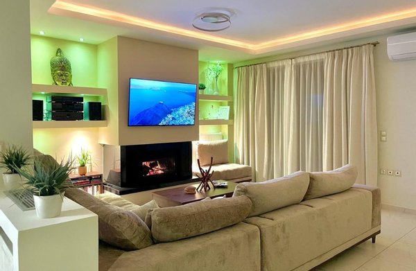 Diese wunderschöne Villa zum Verkauf befindet sich in Chania, Kreta, am Rande der Halbinsel Akrotiri. Das Anwesen bietet eine Wohnfläche von 185 m² auf einem 450 m² großen Privatgrundstück und erstreckt sich über drei Etagen. Von den Balkonen
