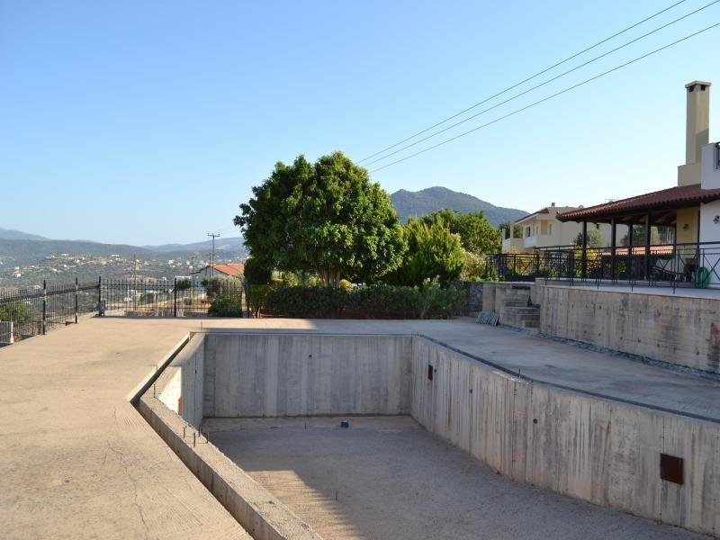 Dieses exklusive Haus mit 5 Schlafzimmern auf zwei Etagen mit 350 m² wurde auf einem 4.000 m² großen Grundstück an den sanften Hängen eines Hügels nur 3 Minuten vom Stadtzentrum von Aghios Nikolaos entfernt gebaut.