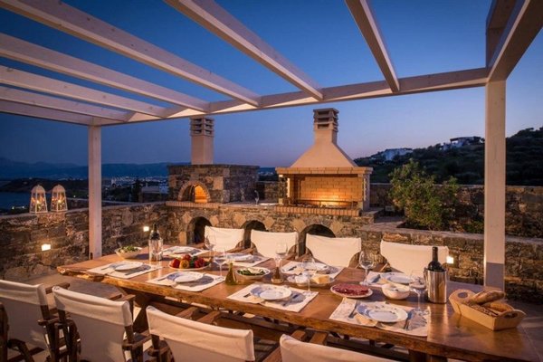Die Villa befindet sich auf einem 1.500 m² großen Grundstück auf einem Hügel und bietet einen wunderschönen Blick auf die Mirabello-Bucht. Außerhalb des Hauptwohnbereichs befindet sich eine riesige Terrasse mit einem 68 m² großen Pool, modernen bequemen Sonnenliegen, einem schattigen Essbereich sowie einem Grillplatz und einer Sauna.