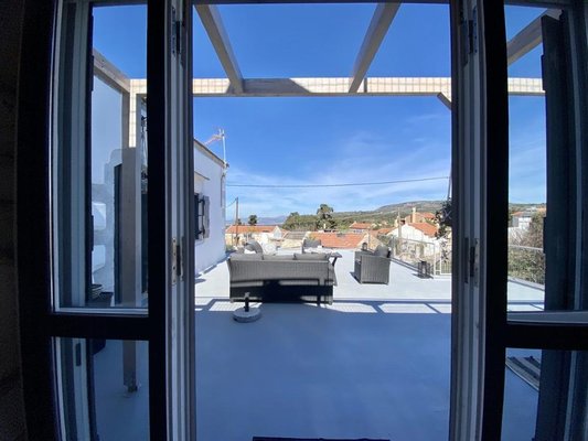 Das letzte der vier Schlafzimmer befindet sich auf dieser Etage. Ein großes Doppelzimmer mit zwei separaten Türen, die auf die Vorderseite und Seite der geräumigen Dachterrasse führen, die einen großartigen Blick auf die weißen Berge bietet.