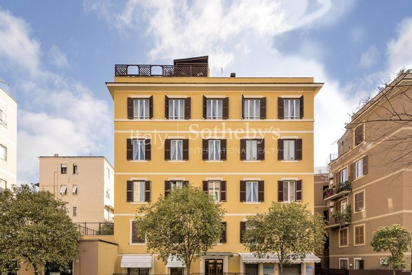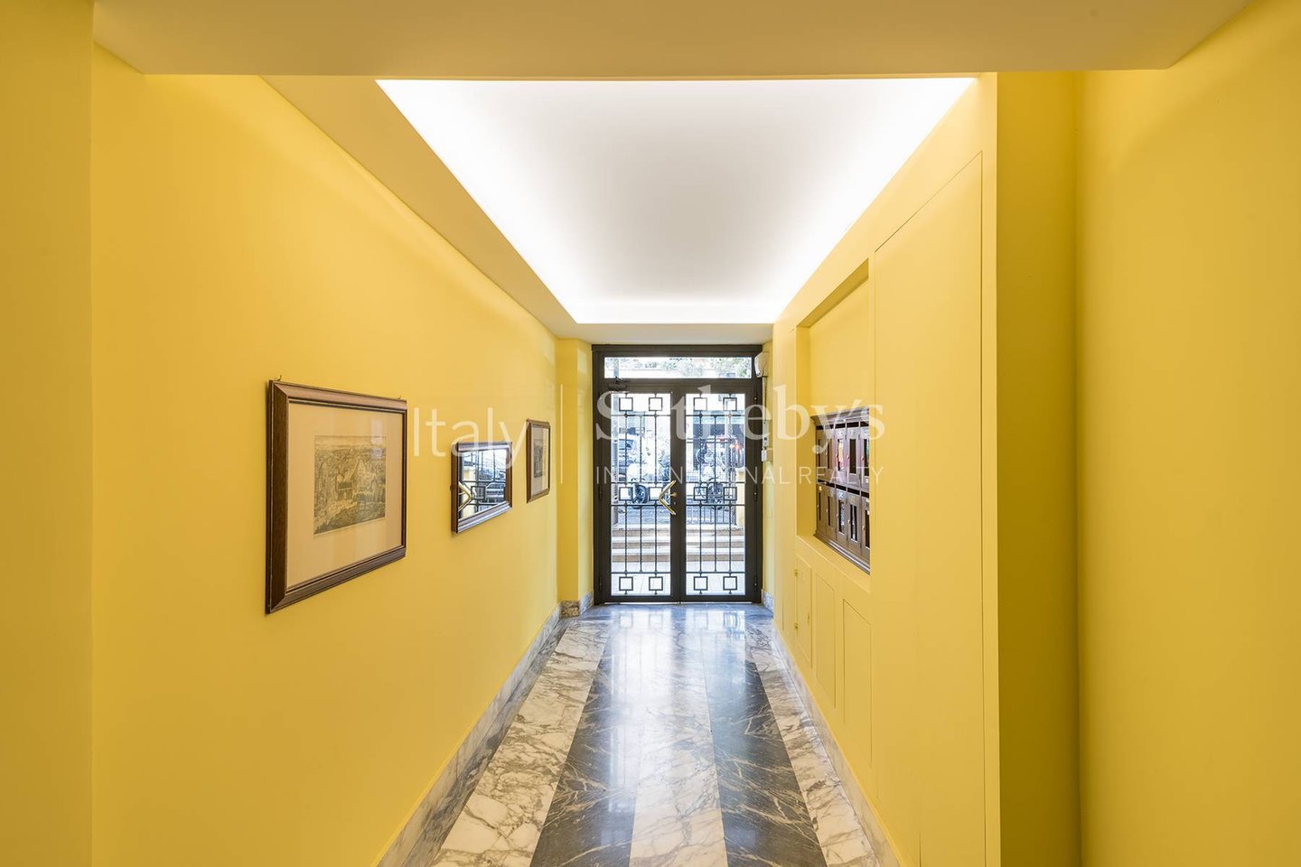 This space, always sunlit, includes two wooden pergolas that create distinct areas for dining and lounging in total privacy. The rooftop terrace is also accessible via the communal staircase.
