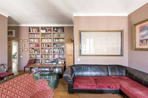 The apartment has three-meter-high ceilings, air conditioning, and independent heating for maximum comfort.