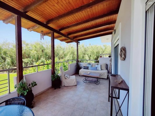 Diese wunderschöne Villa in Platanias bietet eine großzügige Wohnfläche von 320 m² auf einem 4.025 m² großen Grundstück. Das Haus erstreckt sich über zwei Ebenen und umfasst drei Schlafzimmer, zwei Badezimmer, eine Küche und zwei Wohnzimmer. Es