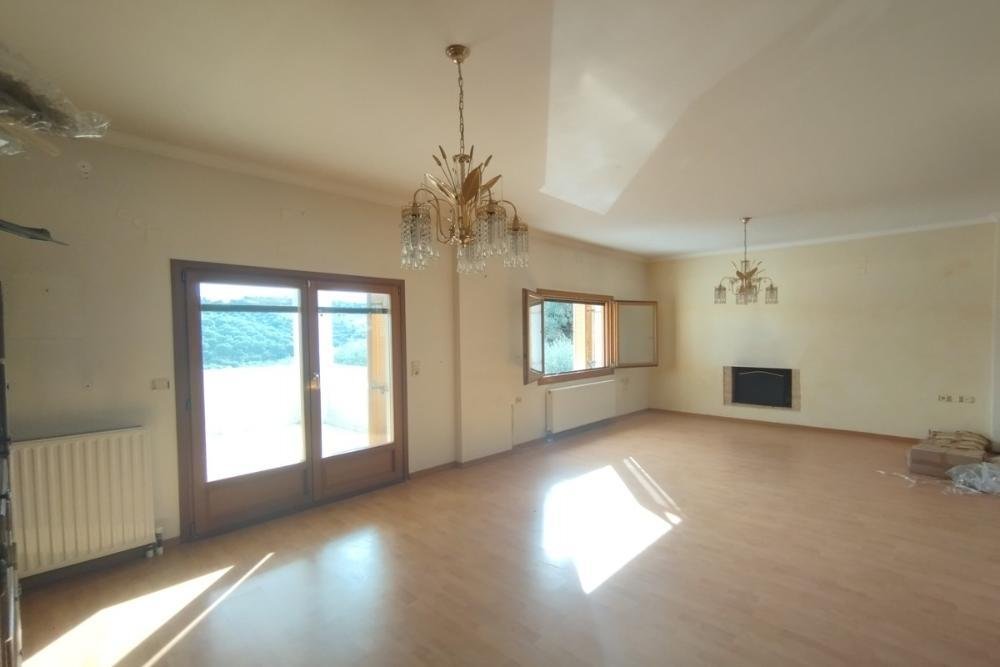 Im Obergeschoss befindet sich eine sehr geräumige Küche und ein Wohnbereich mit Kamin sowie eine gemütliche Terrasse mit herrlichem Blick auf das Meer und die Berge. Darüber hinaus befinden sich auf derselben Etage drei Schlafzimmer und zwei Badezimmer. Zwei Stockwerke tiefer gibt es einen großen Lagerraum, einen Heizraum sowie einen überdachten Parkplatz. Es gibt auch einen Keller mit zusätzlichem Platz, der auch in ein weiteres gemütliches Zimmer umgewandelt werden kann.