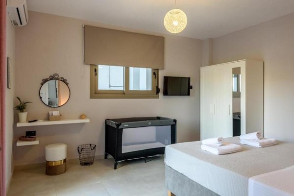 Dies sind zwei separate Wohnungen zum Verkauf in Nea Kydonia, Chania, Kreta, im Dorf Stalos, nur 5 Autominuten vom Strand entfernt. Sie verfügen über eine Gesamtwohnfläche von 373 m² auf einem 624 m² großen Grundstück, verteilt auf 2 unabhängige
